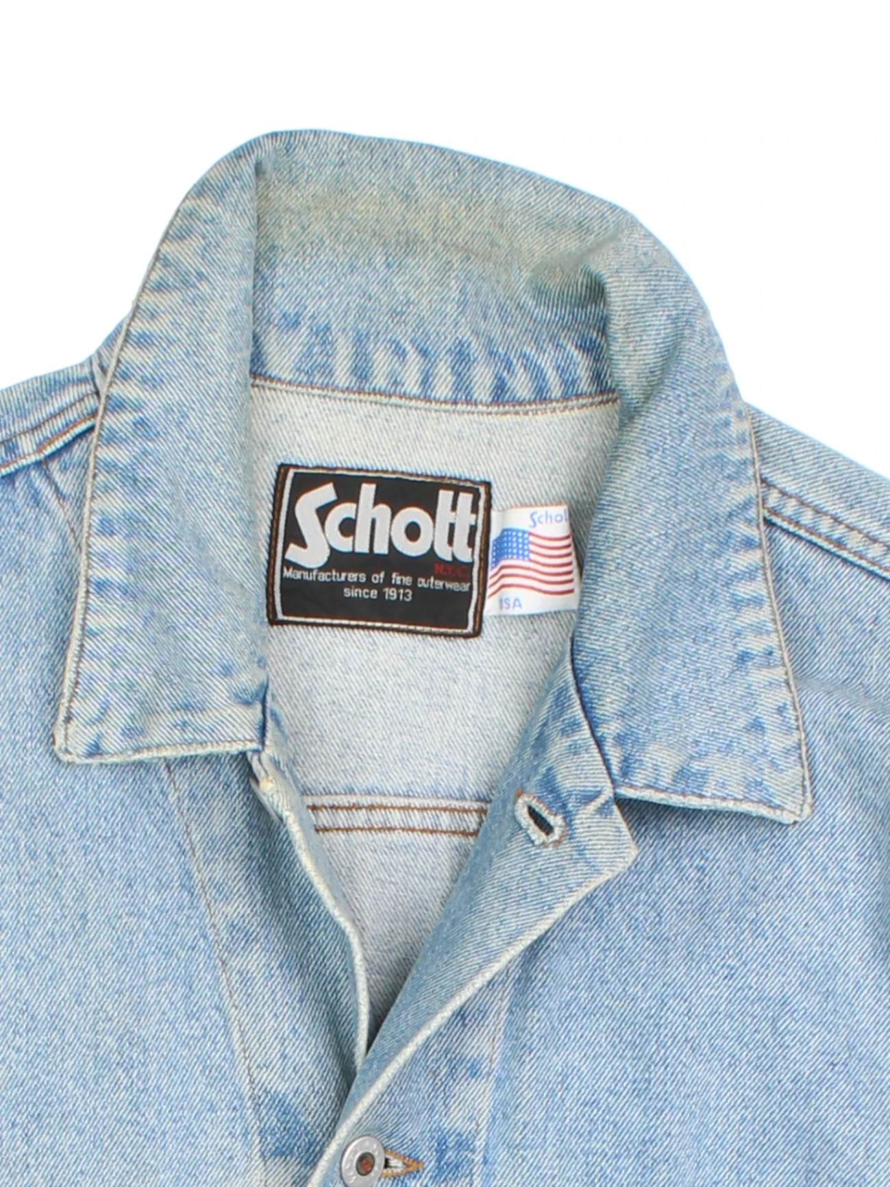 Step into classic 80's style with the Schott Light Blue Denim Jacket, a true staple for any vintage enthusiast. This jacket is expertly crafted from premium denim, offering a durable and comfortable fit ideal for layering throughout the seasons. The iconic light blue wash and structured silhouette encapsulate retro charm, making it perfect for both everyday casual wear and standout street style. Complete with classic button fastenings, chest pockets, and signature Schott branding, jacket is designed to flatter and provide timeless appeal. Pair effortlessly with jeans, chinos, or shorts to elevate your wardrobe with this versatile outerwear essential.