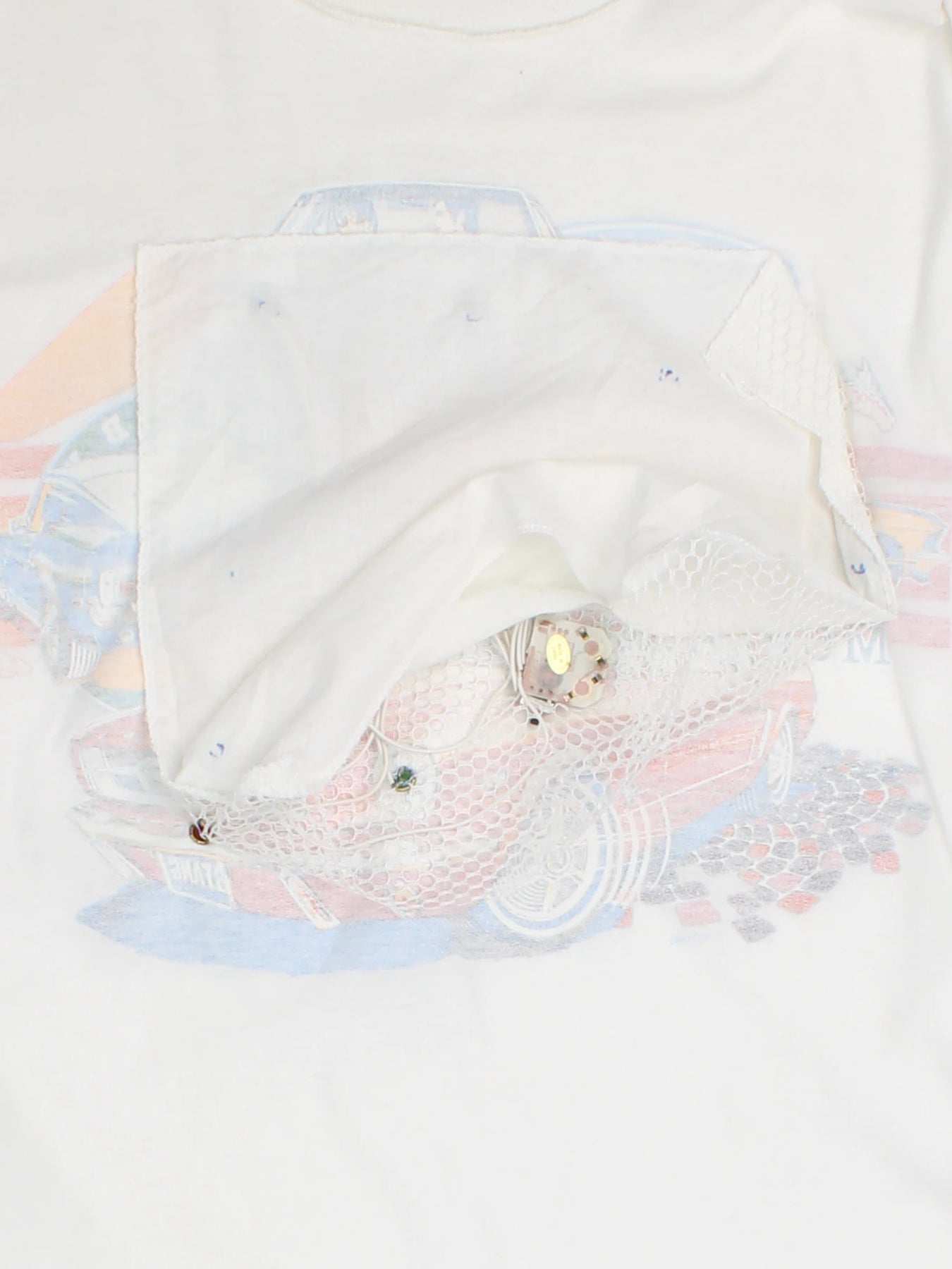 Step into vintage automotive style with this iconic 1985 Ford Mustang Graphic T-Shirt. Featuring a vibrant and detailed print of classic Ford Mustang models in full colour, this piece captures the spirit of motoring nostalgia for both collectors and enthusiasts. Crafted from breathable cotton, the shirt offers a soft, comfortable wear perfect for casual days, car meets, or retro-themed outings. The size XS fit ensures relaxed comfort while the unique graphic adds standout appeal. It is an essential addition for fans of vintage cars and classic American style, easily paired with jeans or shorts for a timeless look. Make a bold statement and re-live the 80's with this standout wardrobe piece!