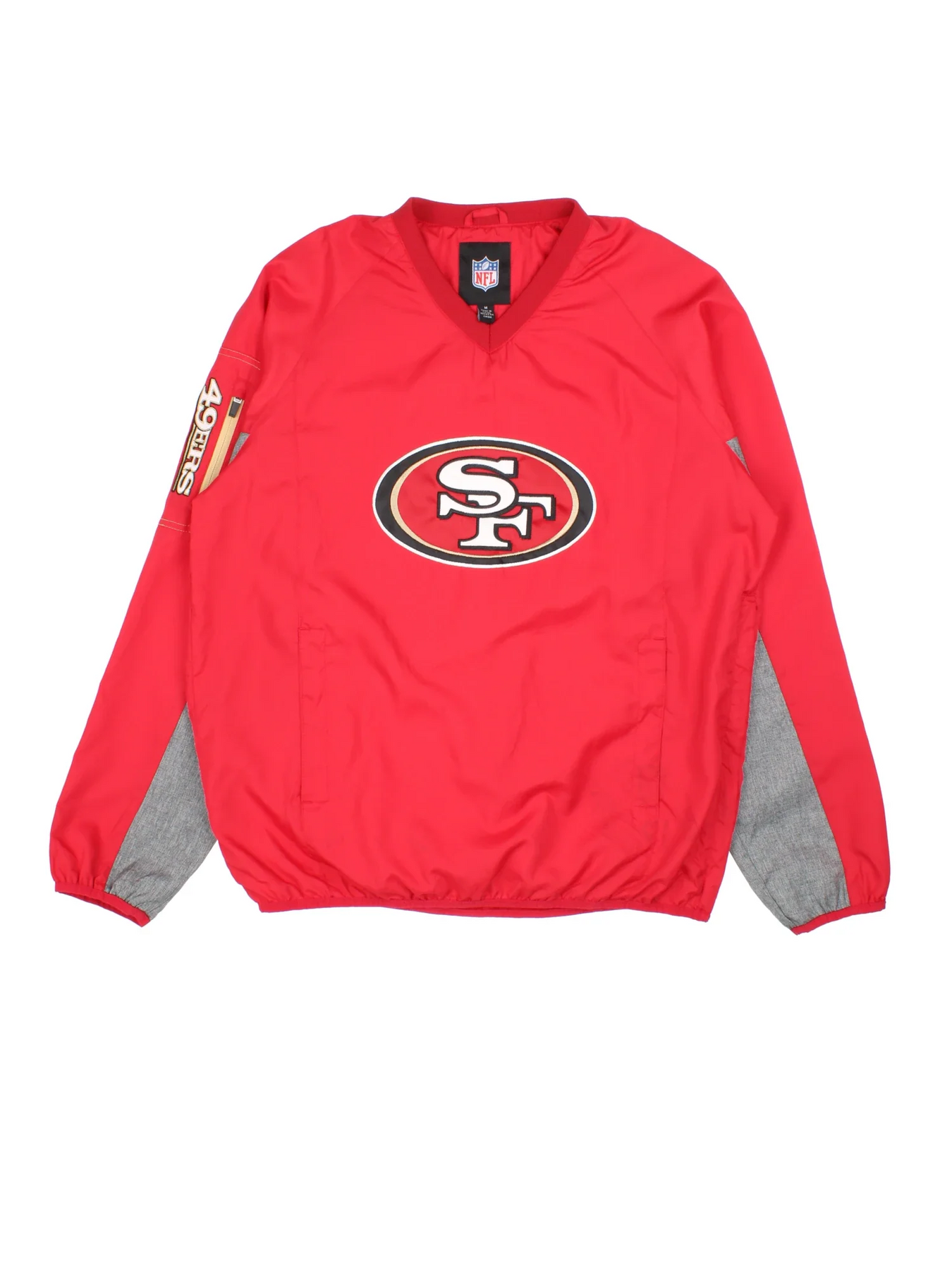 NFL San Francisco 49ers Training Top in a red/grey colourway. Pullover with side pockets, contrast cuffs and hem. Logos embroidered on front and sleeve.