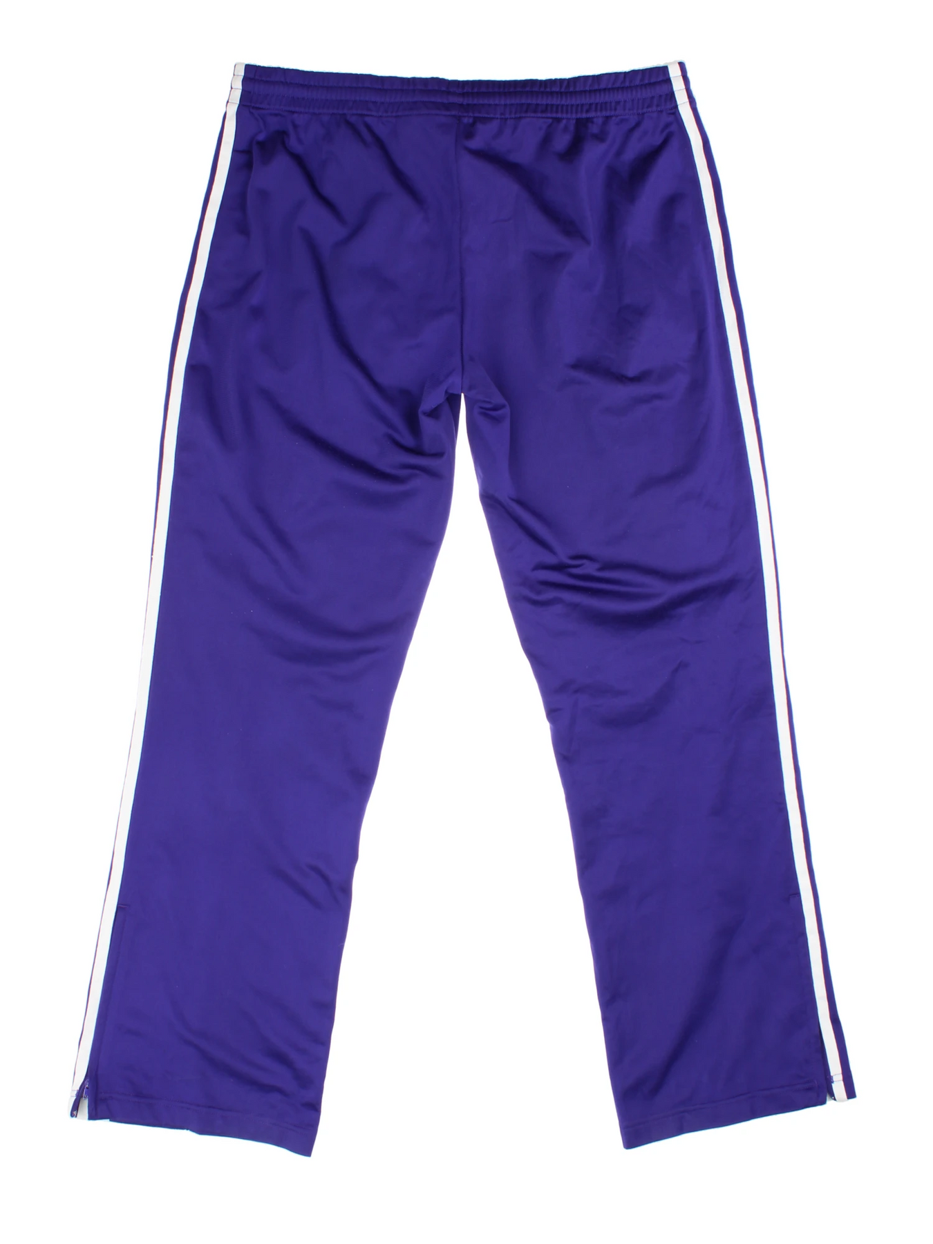 Step up your streetwear game with these Adidas Purple Polyester Track Pants, designed for both comfort and retro appeal. Crafted from lightweight polyester, these trousers offer breathability and ease of movement, making them ideal for active days or relaxed casual outings. The striking purple shade is accented by Adidas's signature side stripes and Trefoil logo, capturing a true vintage sportswear vibe. Perfect for pairing with trainers and a classic tee, these track pants are a wardrobe staple for those who value both style and functionality. Don't miss out on these timeless Adidas trousers, sure to elevate any athletic or retro-inspired look.