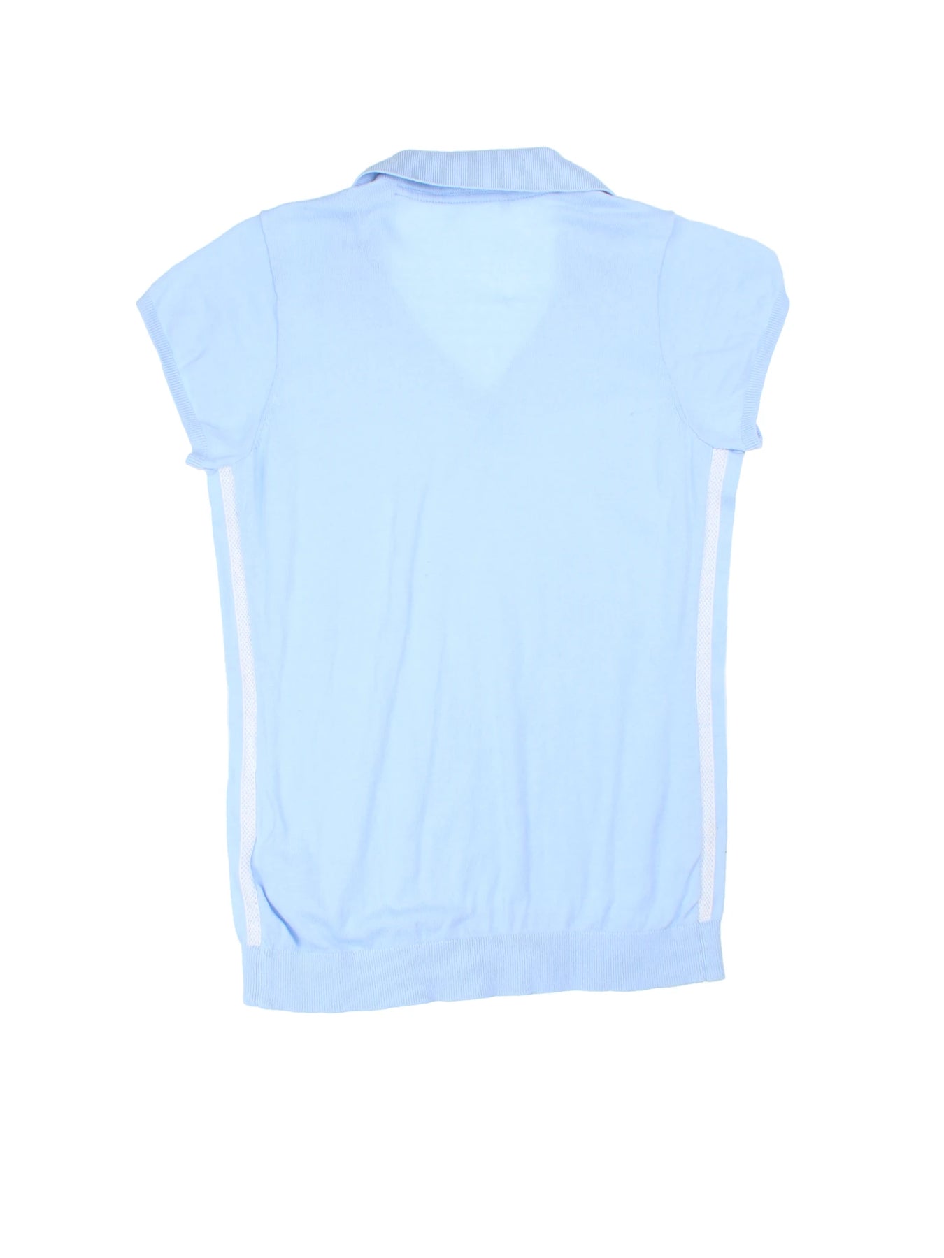 Step into effortless style with this Adidas Women's Light Blue Cotton Polo Shirt, perfect for fans of classic sportswear and retro 90's vibes. Crafted from breathable cotton, this top provides an airy, lightweight fit ideal for everyday comfort, sporty outings, or casual gatherings. The soft pastel blue hue adds a refreshing touch to your wardrobe, while signature Adidas stripes on the sides lend an iconic flair. Designed in size XXS, it features a flattering short sleeve cut and ribbed collar that ensure a versatile and timeless look. This Adidas shirt pairs seamlessly with jeans or skirts for a sporty yet refined outfit, making it an essential addition for fashion. Don't miss out—make it yours today for a standout look!