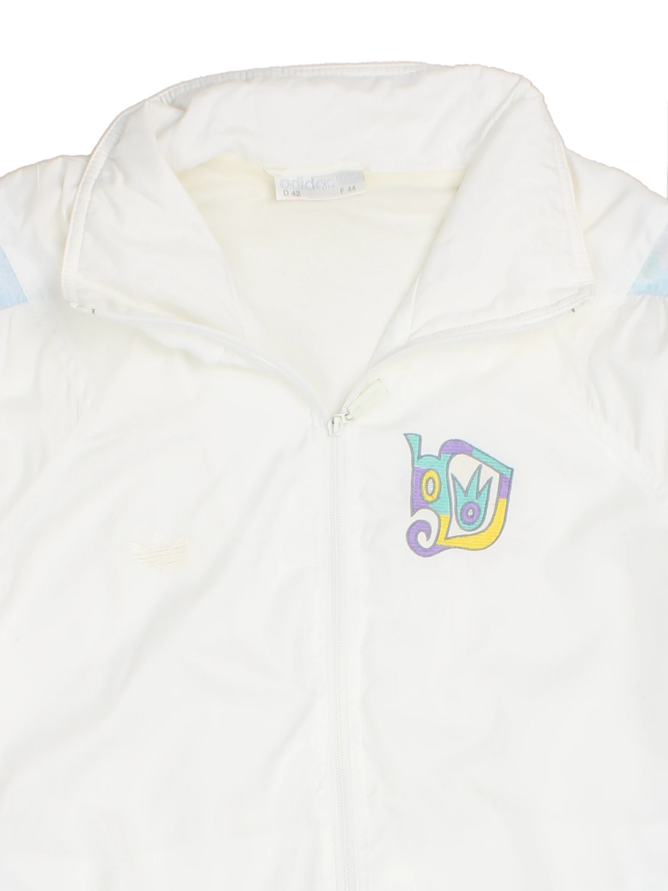 Add a fresh and iconic touch to your wardrobe with this authentic Adidas 90's White Pastel Vintage Polyester Bomber Jacket in size XXL. Featuring distinctive pastel panel detailing and a bold retro 90's graphic, this jacket captures true vintage sports street fashion. Crafted from lightweight polyester for durability and comfort, it is perfect for layering on brisk days or elevating your casual outings. The ribbed hem and cuffs ensure a secure fit, while the high neck design offers extra warmth. Pair with classic denim or sporty joggers for an effortlessly cool, nostalgic look that stands out this season.
