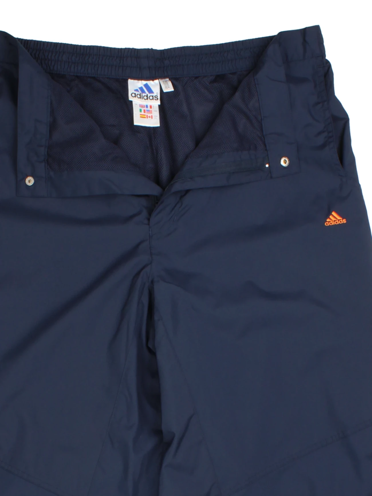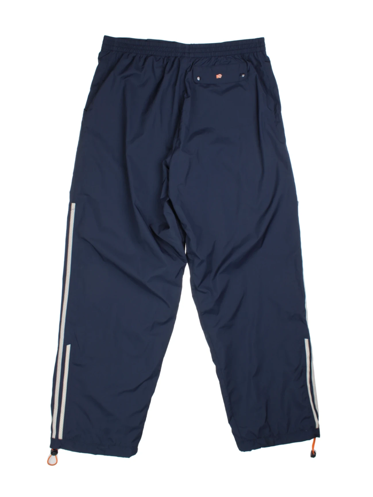 Elevate your athletic wardrobe with these Adidas Navy Blue Polyester Sports Trousers. Crafted from lightweight, durable polyester, these trousers feature reflective stripes along the sides for enhanced visibility, making them perfect for outdoor workouts or late evening jogs. The adjustable hem with drawcords offers a custom fit, while the relaxed cut ensures ease of movement and a versatile sporty look. Finished with iconic Adidas branding and practical pockets, they are ideal for both casual outings and intense training sessions. Step out in classic 90s sports style that blends functionality with retro flair.