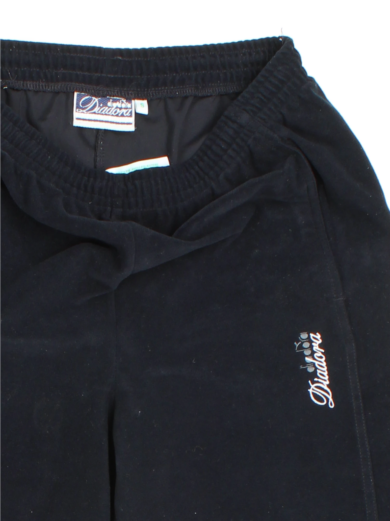 Step into relaxed style with these Diadora Black Velour Track Pants, inspired by classic 90's sportswear. Crafted from premium velvet material, these track pants offer a combination of luxurious comfort and athletic appeal. The soft, plush feel of the velour fabric makes them ideal for day-to-night wear, whether you are lounging at home or heading out for casual activities. Featuring a sleek black colour for easy styling, the elasticated waistband ensures a secure, flexible fit, and the full-length design flatters with a streamlined silhouette. Embroidered Diadora logo adds a touch of vintage authenticity. Perfect for women seeking sporty retro vibes, these track pants are a must-have addition to any classic wardrobe. Pair with trainers and a graphic tee for the ultimate throwback look.