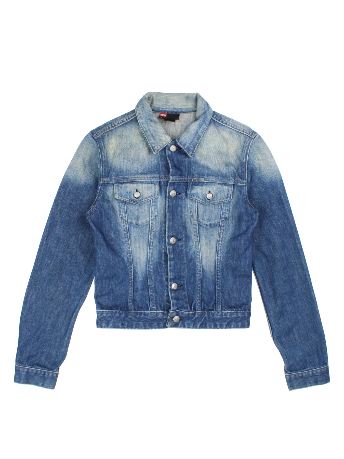 Upgrade your outerwear collection with this timeless Diesel Blue Denim Jacket, expertly crafted to channel that authentic vintage flair. Made from durable denim, this jacket is perfect for everyday wear and layering through the seasons. The classic mid-blue wash, accented by signature Diesel branding and metallic button details, ensures a stylish yet rugged appearance. Pair effortlessly with jeans or chinos for a classic look. Don't miss your chance to own a piece of iconic fashion designed for lasting style and comfort.