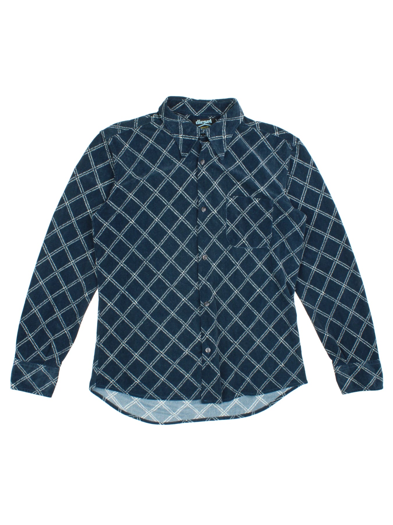 Elevate your casual wardrobe with the Diesel Corduroy Blue Checked Long Sleeve Shirt, crafted to perfection for a statement look. This shirt features a classic checked pattern in a rich blue colour, evoking timeless style with a distinct 90's workwear flair. Made from premium corduroy, it guarantees a soft, durable texture and exceptional comfort for everyday wear. The L size ensures a regular fit, ideal for layering over tees or under jackets. With a signature Diesel logo tag and traditional button-up front, this shirt merges bold street style with practical versatility. Wear it with jeans or chinos to effortlessly complete your look, making it a must-have staple for all seasons.