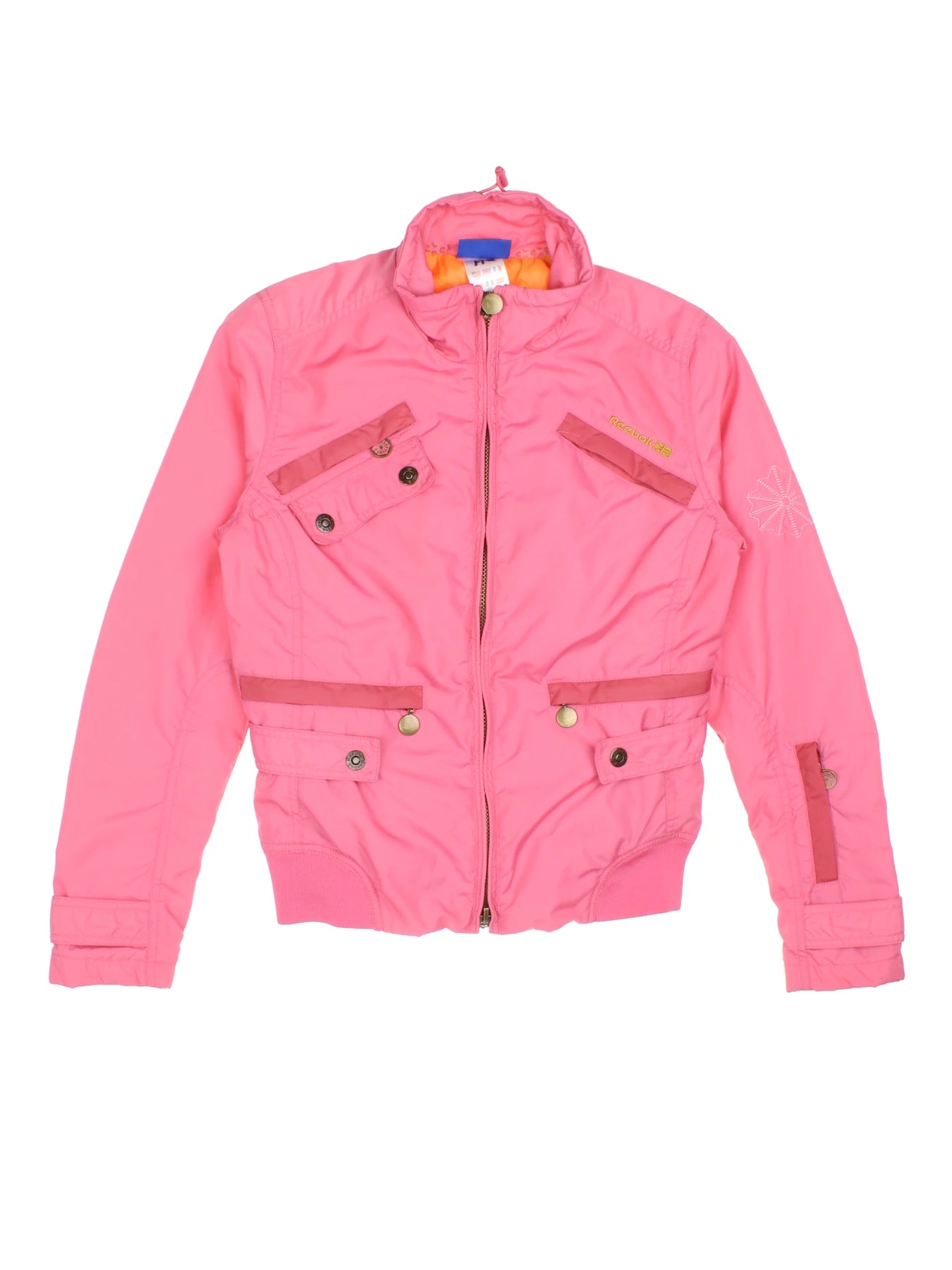 Elevate your street style with this eye-catching Reebok Pink Nylon Bomber Jacket. Designed for women and featuring a bold pink hue, this vintage-inspired piece captures the essence of 90s fashion with its classic bomber silhouette. Crafted from lightweight nylon, it offers a comfortable fit that’s perfect for layering throughout the cooler months. Functional zip and button pockets at the chest and waist add practical flair, making it as suitable for everyday outings as it is for making a statement at special events. The ribbed hem and adjustable cuffs provide tailored comfort, while the full front zip closure ensures easy wear. Perfect for those who appreciate a blend of sports-inspired design and vibrant retro charm, this medium-sized jacket is a must-have for fashion-forward wardrobes. Pair with jeans or joggers for a relaxed, confident look.