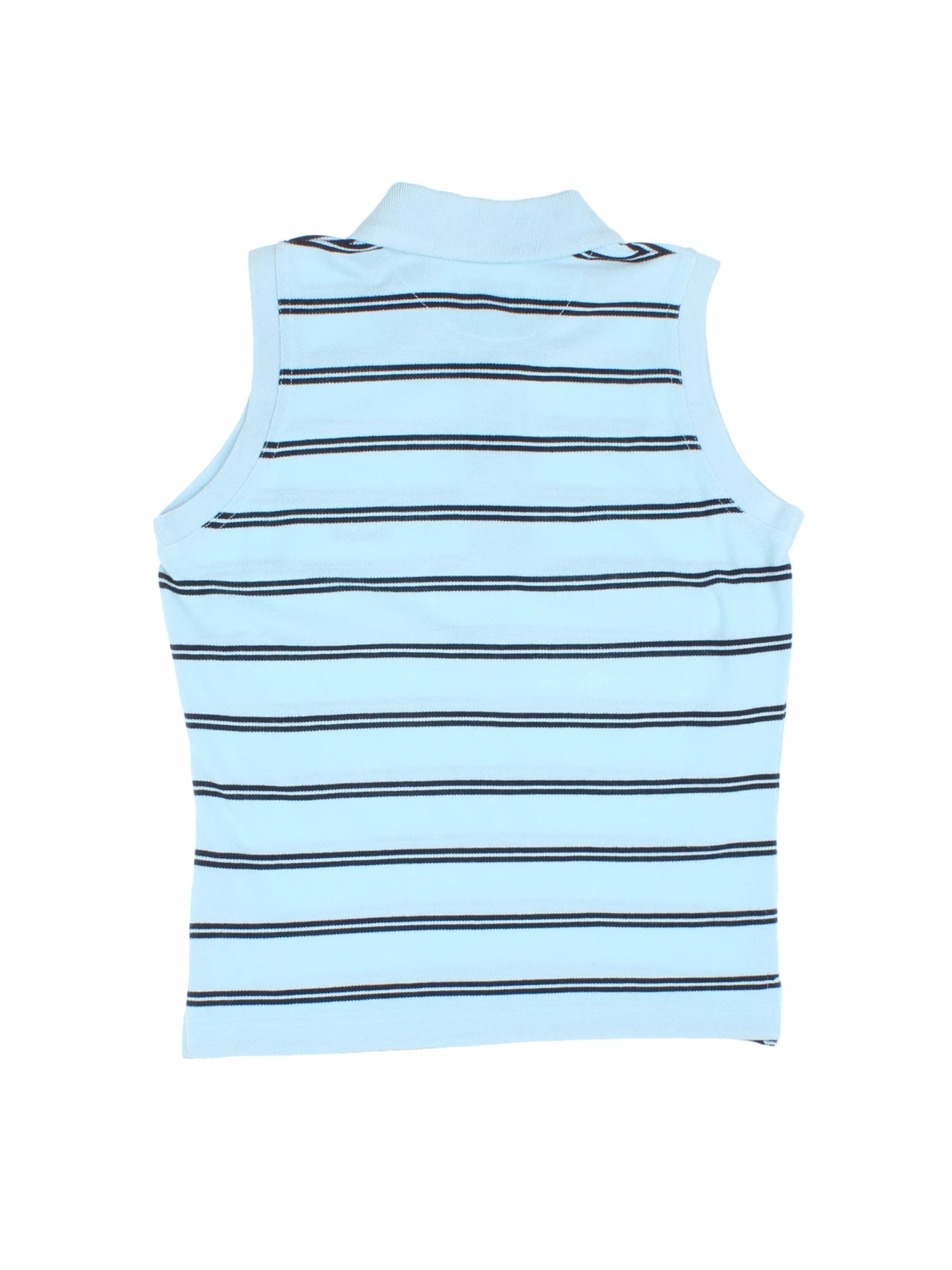 Update your wardrobe with the Reebok Essentials Womens Striped Sleeveless Polo Top in a light blue shade, perfect for both sporty and casual looks. Crafted from a soft cotton blend, this top offers excellent breathability and comfort — ideal for those days outdoors or layered under a jacket for a laid-back look. The collared neckline, button-down front, and horizontal stripe pattern accentuate its timeless Y2K-inspired style. Pair it effortlessly with jeans, shorts, or skirts for a versatile ensemble that supports your dynamic lifestyle. Stand out with Reebok’s heritage sports appeal and make this sleeveless polo your next go-to top for any casual outing!