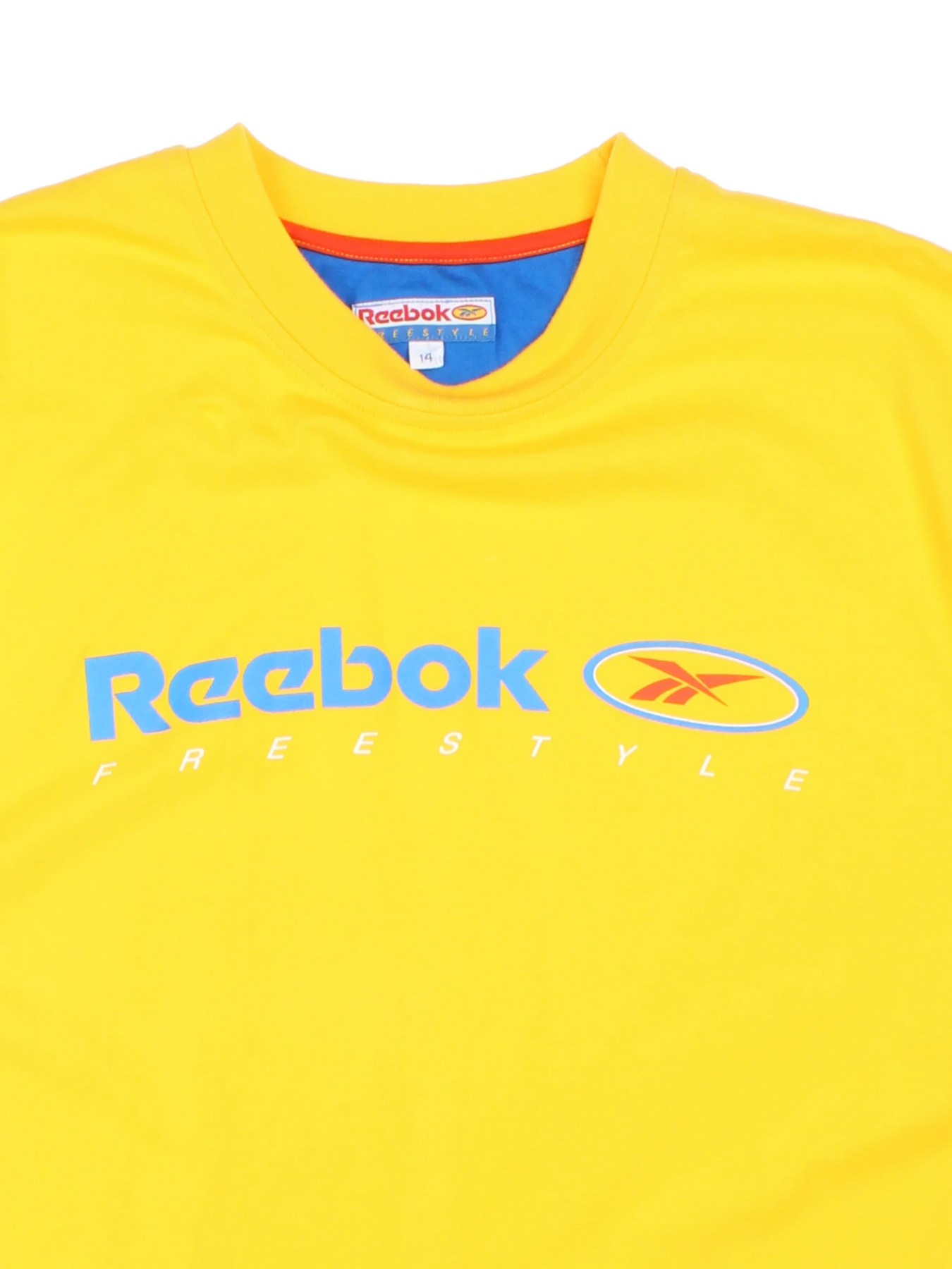 Add a pop of colour to your casual wardrobe with the Reebok Freestyle Classic Yellow Cotton T-Shirt in size M, featuring a bold blue logo for an unmistakable sporty vibe. Crafted from soft and breathable cotton, this iconic tee ensures all-day comfort and effortless style. Perfect for leisure, sports, or everyday wear, the vibrant yellow shade stands out while the classic fit flatters all body types. Showcasing Reebok's legendary freestyle branding across the chest, this T-shirt pairs perfectly with jeans, joggers, or shorts for a versatile look. Whether hitting the gym or relaxing with friends, this retro-inspired sportswear staple makes an eye-catching addition to any outfit.