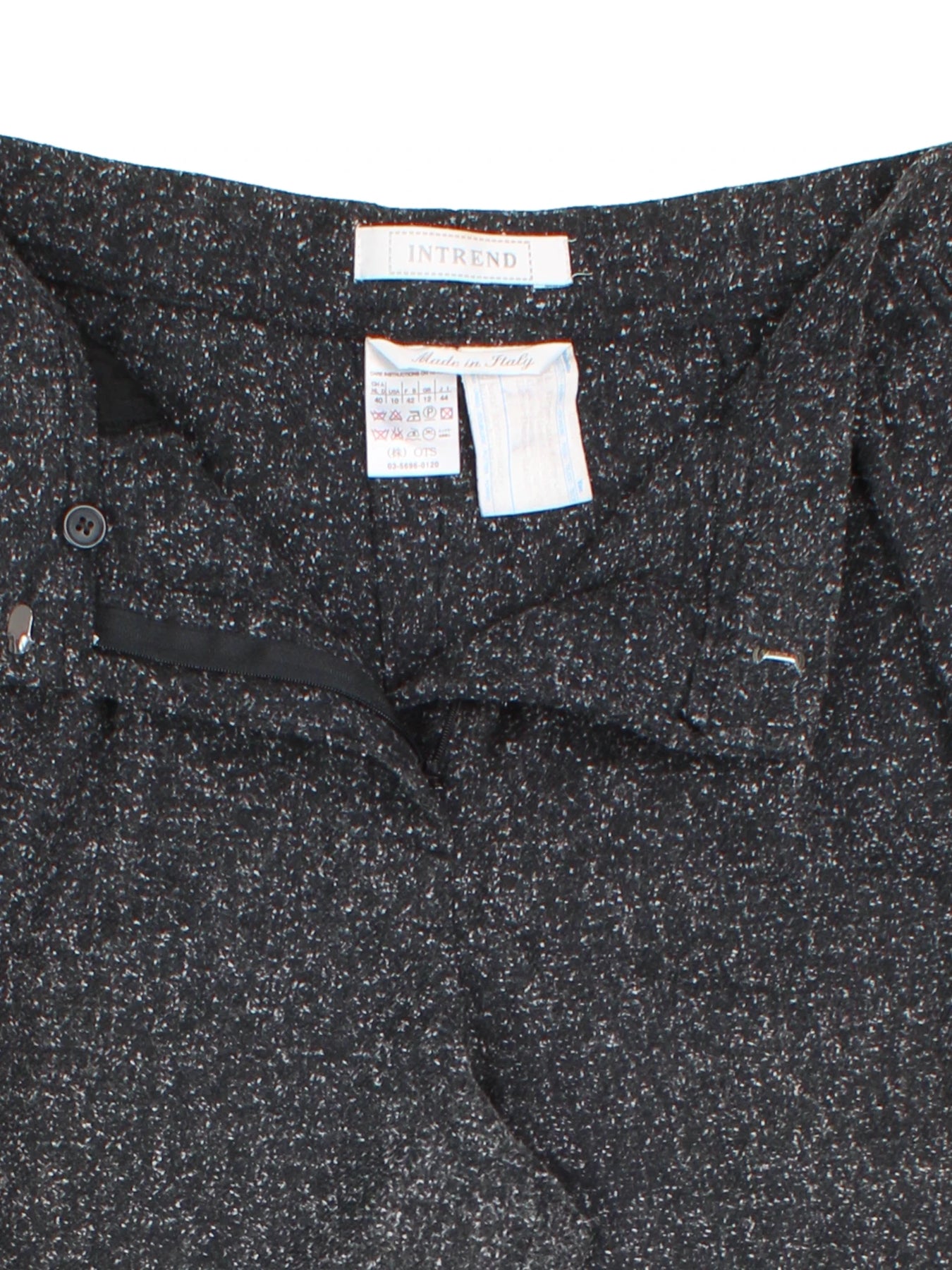 Step into timeless sophistication with the Intrend Wool Blend Grey Wide Leg Trousers, crafted in Italy for exceptional quality and style. The luxurious wool blend material ensures a soft, warm feel, perfect for transitioning between seasons. High waisted for a flattering fit, they feature classic tailoring details and a versatile grey colourway, making them easy to pair with blouses, knitwear, or structured jackets. Ideal for those who embrace the subtle charm of the 90's aesthetic, these size L trousers provide lasting style and everyday comfort for work or weekend wear.