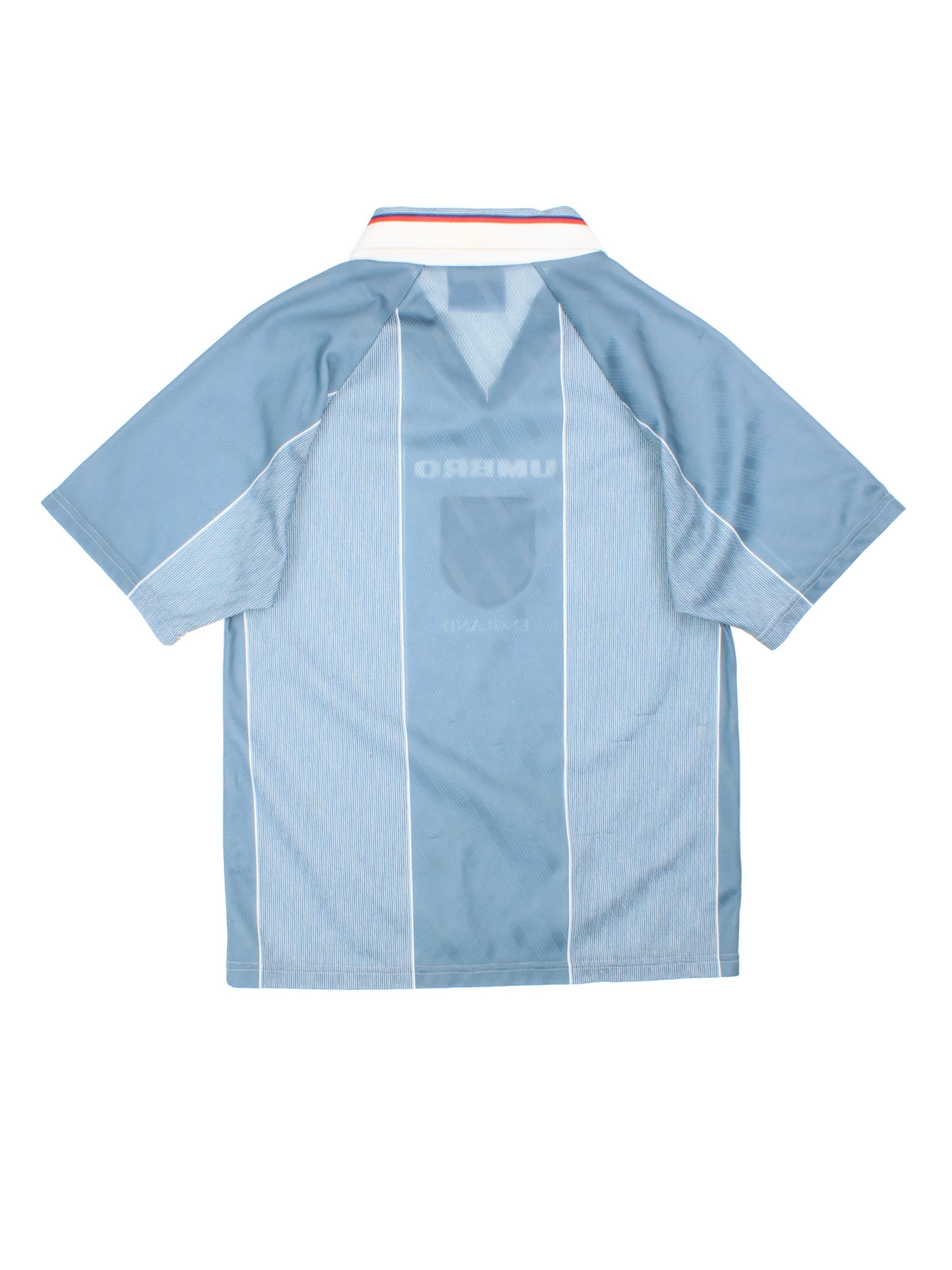 Celebrate football heritage with this authentic Umbro England Short Sleeve Football Shirt, perfect for passionate fans. Crafted from durable polyester, this shirt showcases retro 90s styling with the iconic England crest and classic Umbro branding. Designed for everyday wear or match day, its breathable material ensures all-day comfort and a sporty fit, making it an essential piece for any England supporter’s wardrobe. The distinct blue hue and traditional collar with stripe detail highlight its vintage appeal, ideal for sports activities, casual wear, or as a valued collector's item. Pair with shorts or denim for a nostalgic look that exudes team pride and British tradition.