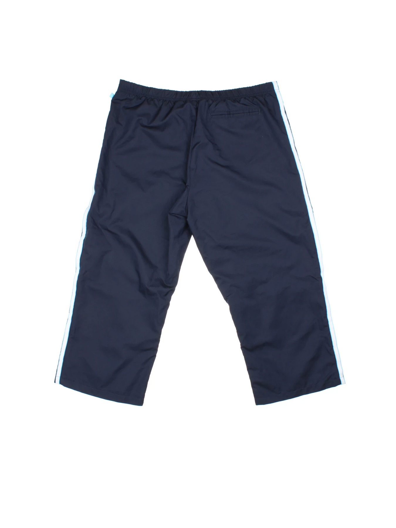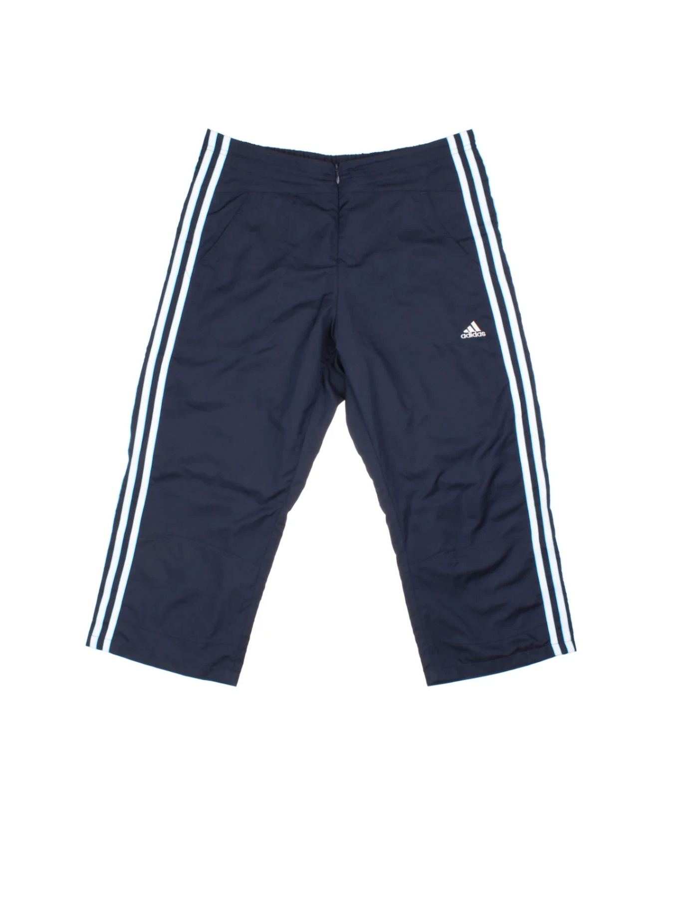Y2K Adidas 3/4 Shorts in blue colourway. Features zip closure, mesh lining, pockets, iconic 3 stripe detailing down the side and the logo embroidered on the front.