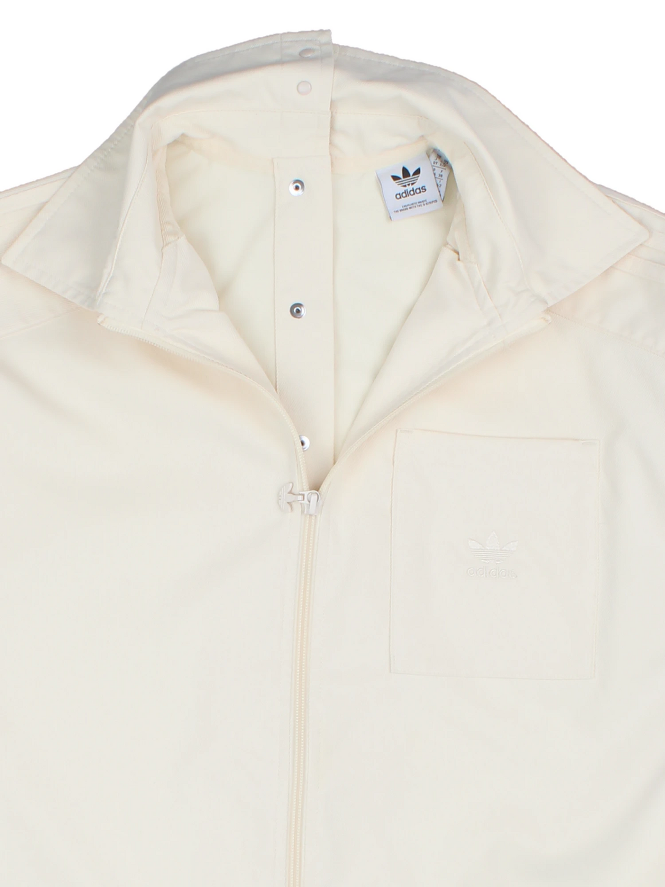 Experience minimalist style and comfort with this Adidas cream zip-up jacket. Crafted from high-quality polyester, this 90's inspired piece seamlessly combines clean lines with the iconic Adidas Trefoil logo subtly embroidered on the chest pocket. The overshirt features a sturdy front zip, button detailing along the inner placket, and long sleeves with tailored cuffs, making it perfect for layering or wearing as a lightweight jacket. Its understated colour palette and relaxed silhouette provide versatility for both casual outings and smart streetwear looks. Ideal for transitional weather, this stylish overshirt pairs easily with jeans, joggers, or shorts, offering timeless appeal for any modern wardrobe. Add this authentic Adidas overshirt to your collection and elevate your everyday ensemble with signature sporty style.