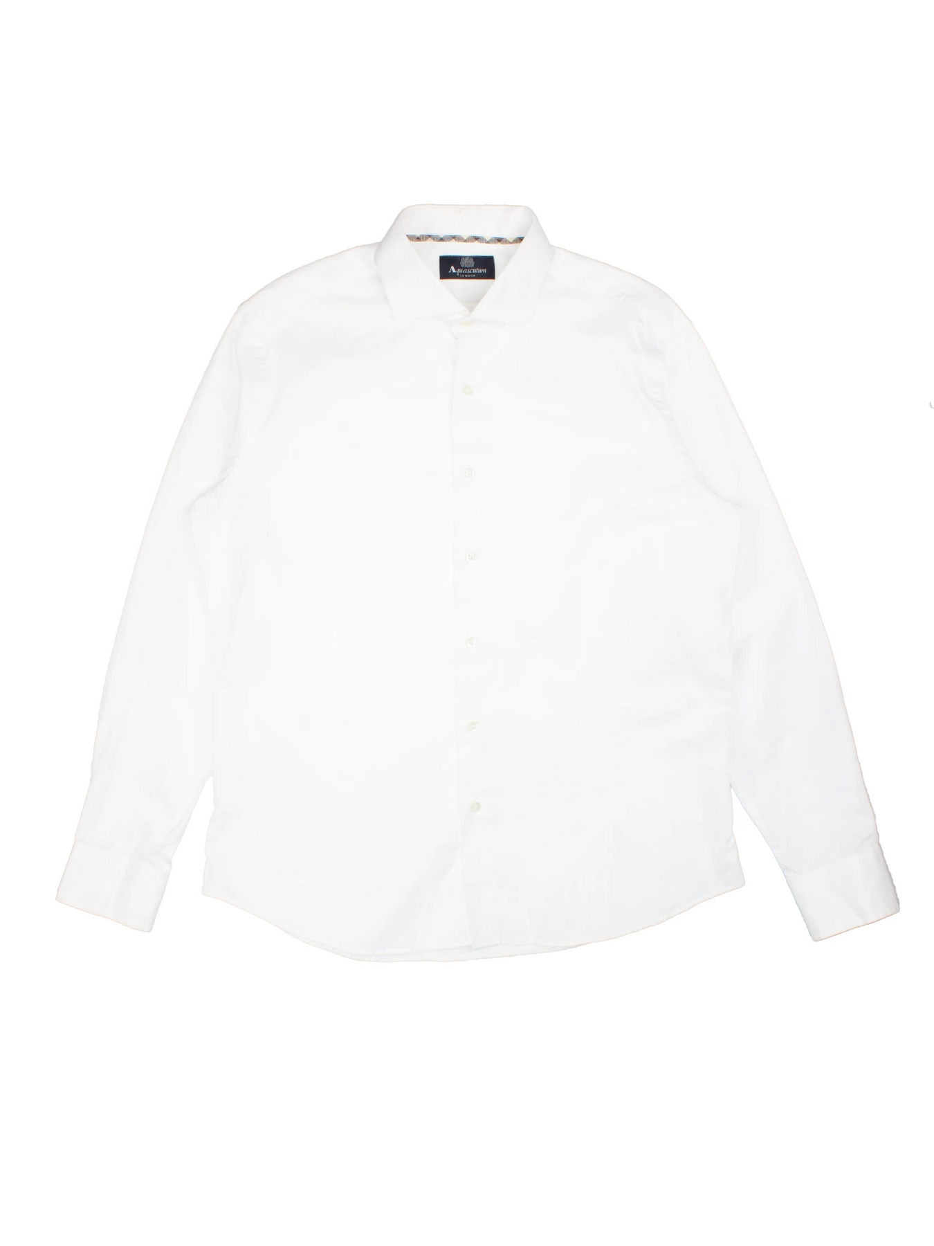 Elevate your wardrobe with the timeless sophistication of the Aquascutum Classic White Cotton Long Sleeve Shirt in Size L. Crafted from premium quality cotton, this shirt delivers unmatched comfort and breathability, making it ideal for both smart and casual occasions. Featuring a crisp white colour, structured collar, and button-down front, it offers a versatile option for styling under blazers or as a standout piece on its own. The classic fit ensures ease of movement and a flattering silhouette for everyday wear. Perfect for office settings, formal events, or stylish day-to-day outfits, this Aquascutum shirt is a must-have staple that enhances your ensemble with effortless elegance.