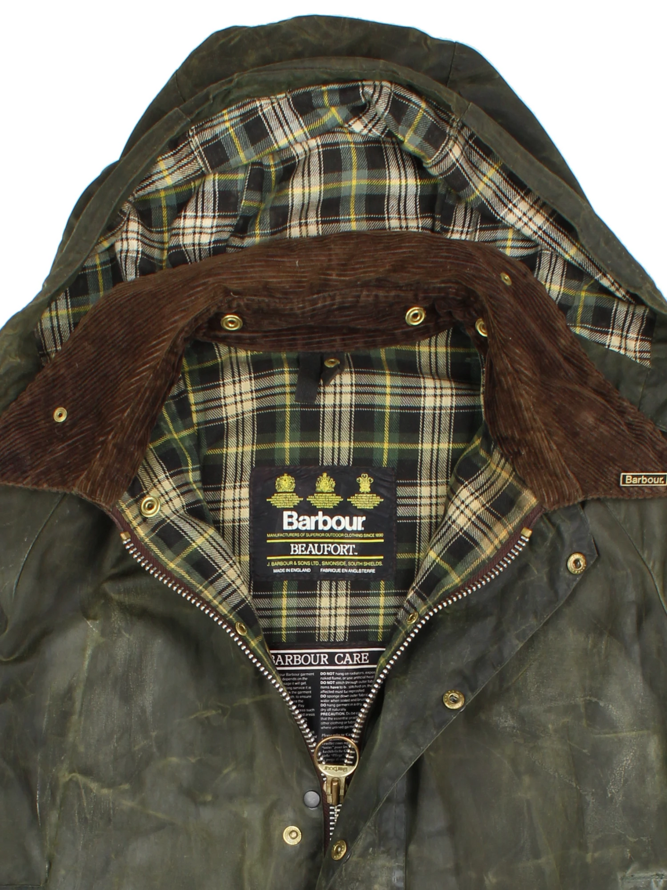 Step into classic British style with the Barbour Beaufort Waxed Cotton Green Jacket, an iconic outerwear piece designed for both durability and elegance. Crafted from robust waxed cotton in a distinguished green hue, this jacket offers superb weather resistance and timeless appeal. The soft brown corduroy collar and practical hood add extra comfort, while the signature tartan lining and generous pockets enhance both style and utility. Sized in a roomy L fit ideal for layering, this jacket is perfect for countryside adventures, city strolls, or outdoor occasions. The authentic Barbour branding and meticulous attention to detail guarantee heritage style and lasting performance. Make this Barbour Beaufort a staple in your seasonal wardrobe and enjoy superior comfort, protection, and timeless British design.
