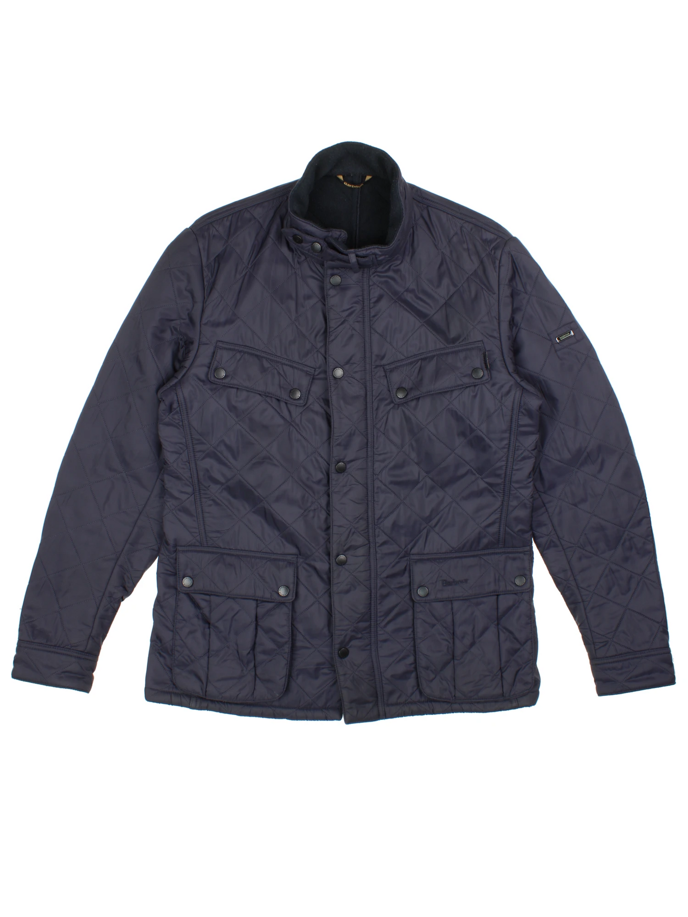 Step out in style with this quintessential Barbour Navy Blue Quilted Polyester Jacket, expertly crafted for men in a desirable size L. The classic diamond-quilted design ensures a timeless look, while the durable polyester material offers excellent protection and warmth, making it perfect for cold-weather commutes, walks, or countryside adventures. Boasting a signature Barbour branded collar and snap-buttoned front pockets, this bomber-style jacket blends heritage outdoor fashion with modern comfort. Its navy blue colour ensures versatility and easy pairing with your favourite wardrobe pieces. Make this must-have Barbour jacket your go-to outerwear staple for reliable British style and function.