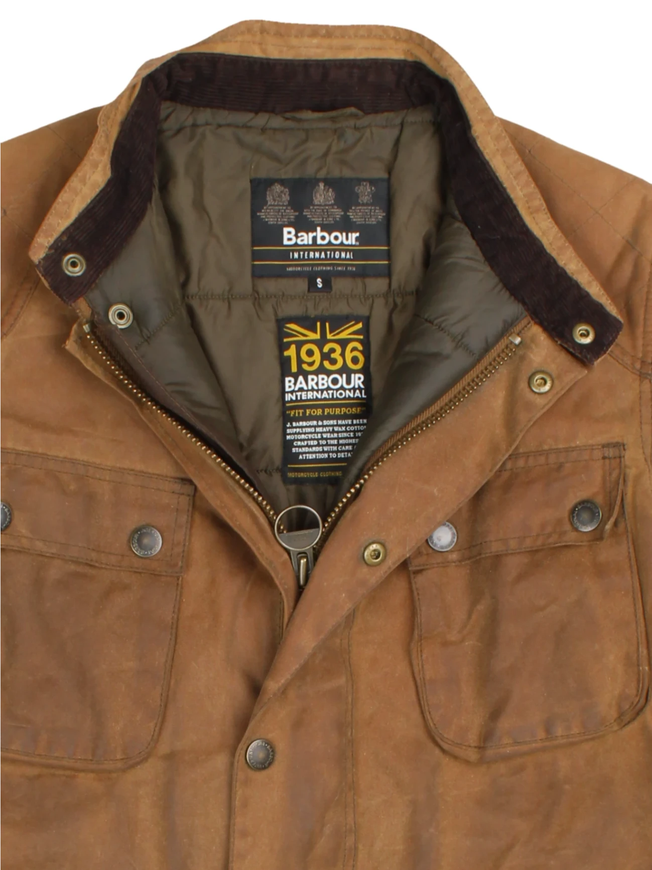 Discover timeless British heritage with the Barbour International 1936 Waxed Cotton Tan Jacket, classic outerwear that fuses vintage appeal with everyday functionality. Crafted from durable waxed cotton, this jacket offers weather resistance and long-lasting wear, making it the ultimate choice for country walks, city commutes, or festival weekends. The rugged tan colour delivers a versatile look while utility pockets and side adjusters enhance practicality and fit. A must-have for those seeking a blend of tradition and outdoor-ready fashion, this jacket ensures lasting warmth and a statement finish. Pair with denim or boots for a truly classic look that transitions effortlessly between seasons.