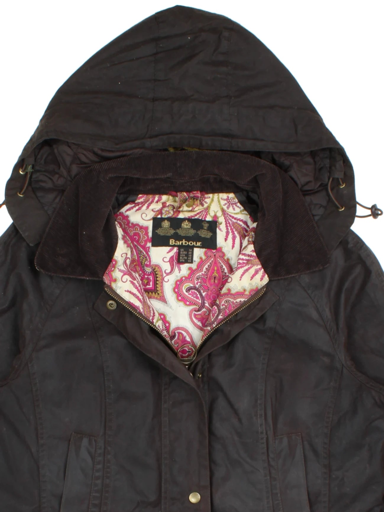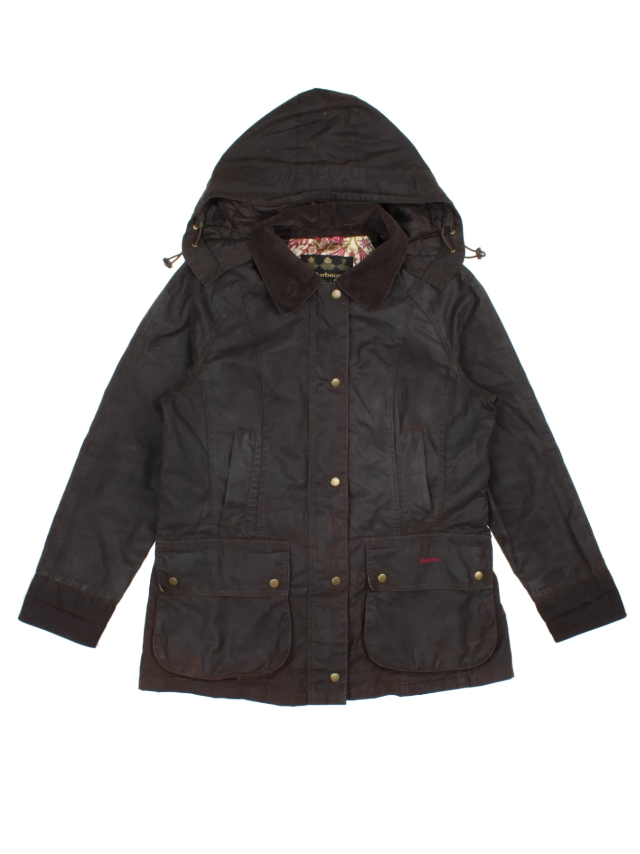 Embrace classic British country style with this Barbour Waxed Cotton Hooded Jacket in a rich brown hue, crafted to deliver timeless elegance and functional design. Featuring Barbour’s signature waxed cotton fabric, this jacket provides excellent weather resistance while maintaining breathability and comfort. The beautiful floral paisley lining adds a touch of sophistication and uniqueness to the interior, enhancing overall appeal. Perfect for both countryside rambles and urban outings, this stylish outerwear piece ensures you stay warm, dry, and effortlessly fashionable year-round. Pair it with boots and jeans for an iconic British heritage look. Order yours today to experience exceptional durability and distinctive design from Barbour.