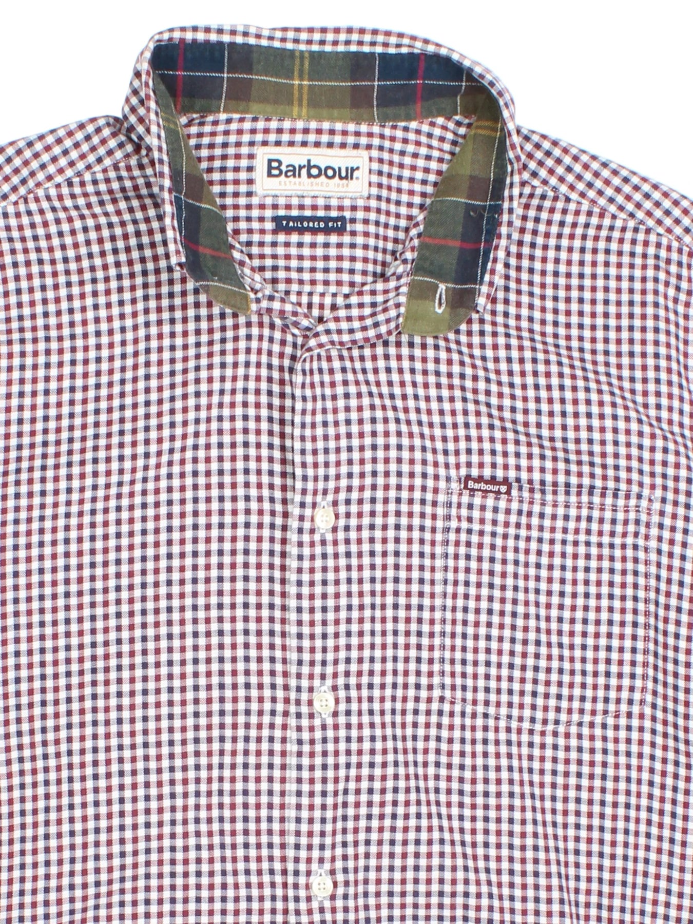 Elevate your casual wardrobe with this Barbour Tailored Fit Cotton Checked Shirt, designed in a timeless multicoloured check pattern. Expertly crafted from high-quality cotton, this long sleeve shirt ensures breathable comfort for day-long wear. The classic button-down collar features distinctive Barbour tartan detailing, adding a refined countryside touch to your look. Sized in a generous Large for a flattering, comfortable fit, this shirt is perfect for casual outings, countryside walks, or relaxing at the weekend. Complete with a handy chest pocket and signature Barbour branding, this versatile checked shirt is the ideal accompaniment to jeans, chinos, or layered under knitwear for effortless styling. Make a sophisticated addition to your everyday essentials and embrace British heritage style with Barbour's signature craftsmanship.
