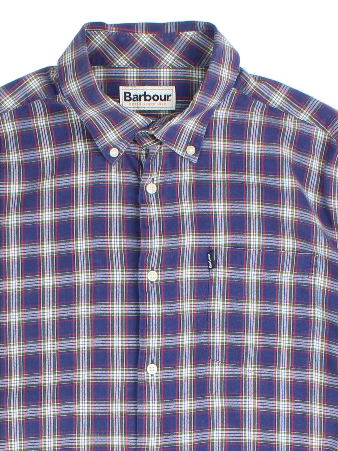 Step out in timeless style with this Barbour Blue Cotton Checked Long Sleeve Shirt. Crafted from soft and breathable cotton, this shirt delivers all-day comfort with an iconic checked pattern that adds a stylish edge to any look. The size M cut ensures a relaxed yet tailored fit—perfect for layering over tees or wearing solo for a sharp finish. Ideal for everyday wear or smart-casual occasions, this blue Barbour shirt combines durability and sophistication, embodying the trusted quality the brand is known for. Pair it with your favourite jeans or chinos for an effortlessly cool ensemble that stands out in any season.
