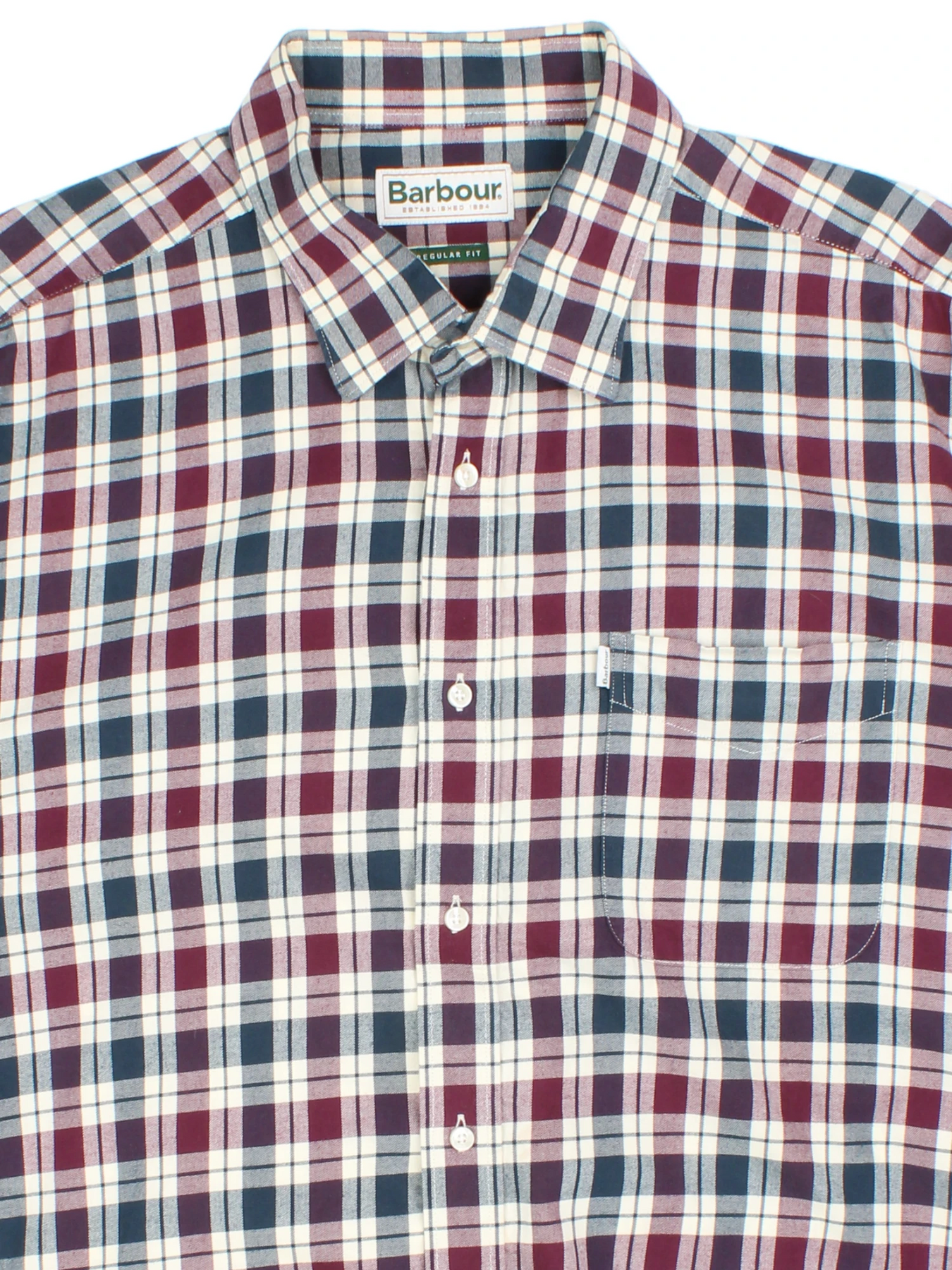 Elevate your wardrobe with the Barbour Regular Fit Checked Cotton Shirt, featuring a timeless blend of blue, burgundy, and white checks. Crafted from 100% cotton, this shirt provides exceptional comfort and breathability, making it an ideal choice for both smart-casual occasions and everyday wear. The classic checked pattern delivers a stylish nod to vintage workwear while maintaining a modern silhouette, and the regular fit ensures a flattering look for larger sizes. Perfect for layering or wearing on its own, this versatile piece effortlessly transitions from the office to weekend gatherings. Pair with jeans or chinos for a sophisticated yet laid-back style. Designed in a size XL, it embodies practical elegance from the renowned Barbour brand, offering reliable quality and a refined finish.