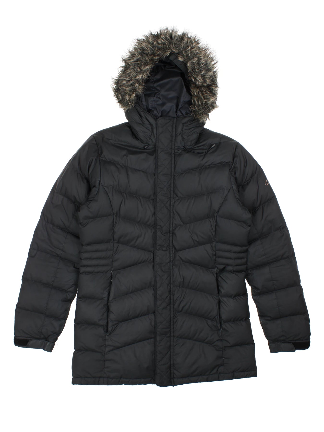 Stay protected from the cold with this Berghaus Black Puffer Coat, featuring a luxurious faux fur hood for enhanced warmth and style. Designed in size S, this puffer jacket offers the perfect blend of comfort and practicality, with a water-repellent polyester shell that makes it ideal for wintry weather. Perfect for outdoor adventures or urban commutes, its quilted pattern delivers extra insulation and a flattering silhouette. Pair with your favourite boots and accessories for a chic seasonal look.