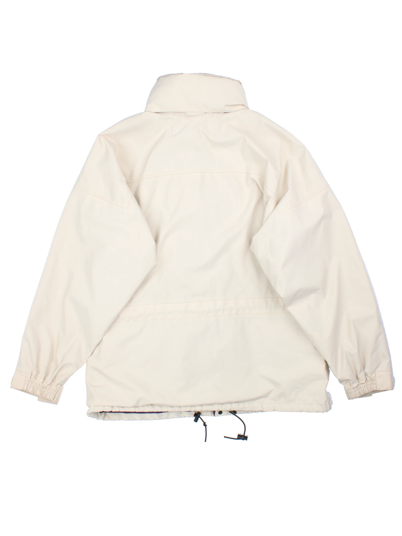 Step into adventure with the classic Berghaus Cream Nylon Outdoor Jacket in size XXL, perfect for embracing the outdoors with confidence and comfort. Crafted from durable nylon, this vintage 90's jacket blends functionality and style, offering lightweight protection that is ideal for hiking, camping, or everyday urban wear. Its neutral cream colour exudes timeless appeal, while the secure snap closures and practical adjustable hem ensure a secure fit in any weather. The jacket features a distinctive purple inner collar for a stylish contrast, and the iconic Berghaus branding for authentic outdoor flair. With a relaxed fit and practical pockets, this piece is a must-have for both seasoned explorers and streetwear enthusiasts. Pair it with jeans or hiking trousers for a versatile wardrobe staple that keeps you looking and feeling great all season.