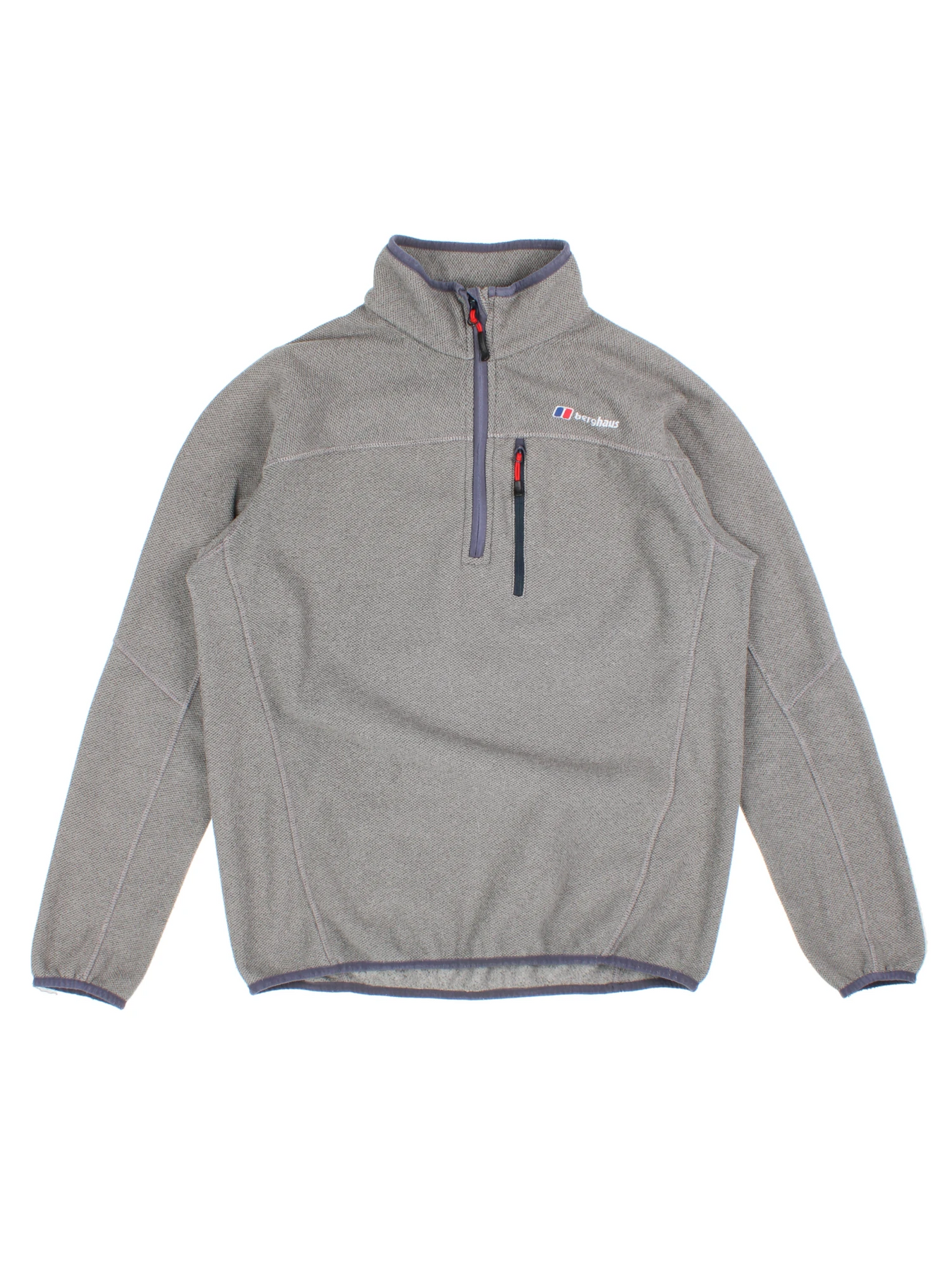 Stay warm and stylish on your outdoor adventures with the Berghaus Grey 1/4 Zip Fleece Pullover. This classic 90's hiking style fleece is made from premium polyester, ensuring a comfortable and insulating fit ideal for chilly weather. The light grey colour and subtle Berghaus branding bring a timeless, versatile look suitable for both city strolls and rugged trails. The pullover features a practical chest pocket and a secure 1/4 zip closure, making it an essential for layering during sports, hiking, or everyday outings. With a durable construction and easy-care material, this fleece delivers both functionality and fashion for any wardrobe.