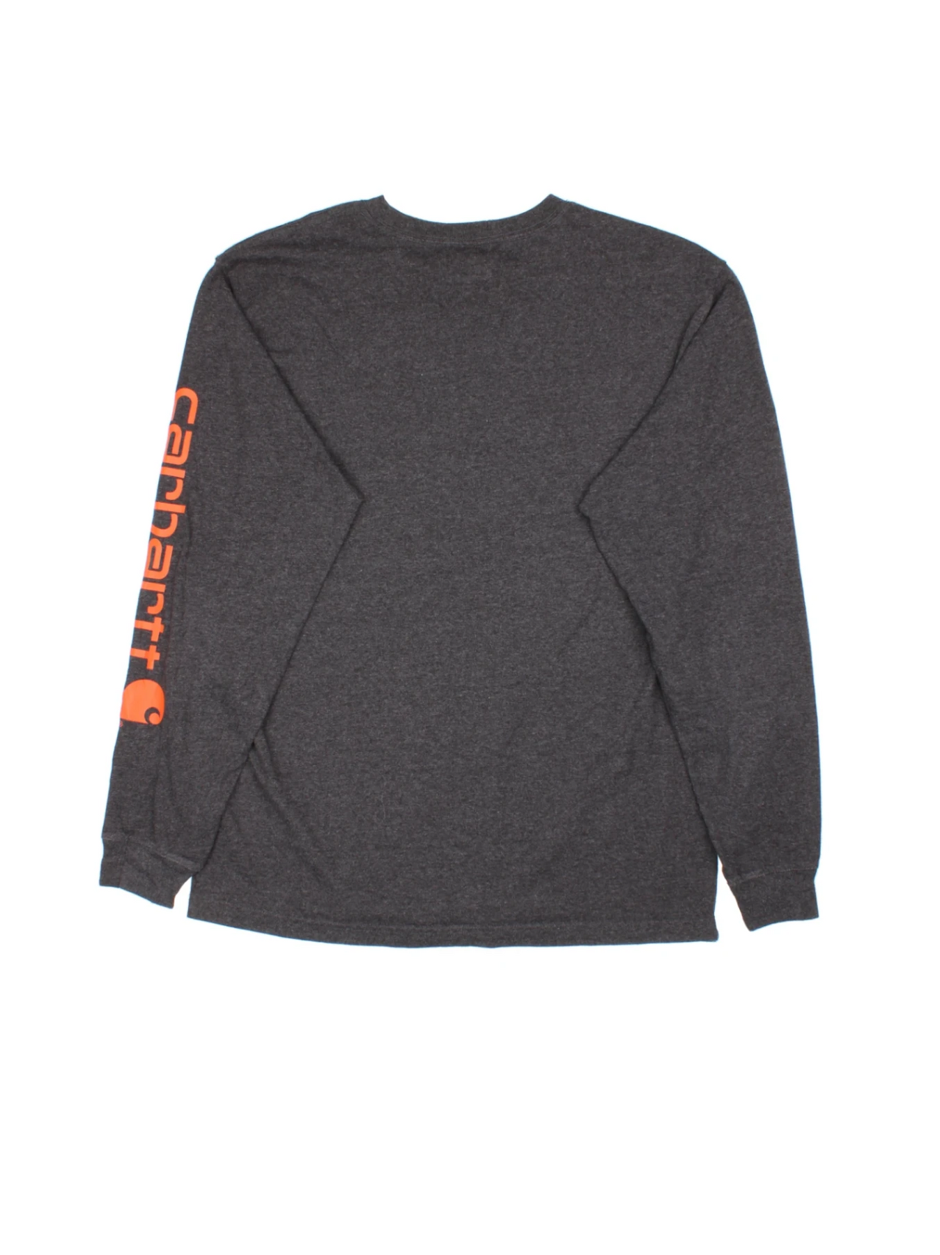 Vintage Carhartt Long Sleeve T-shirt in Grey colourway. Charcoal tone with sleeve-brand text detailing.