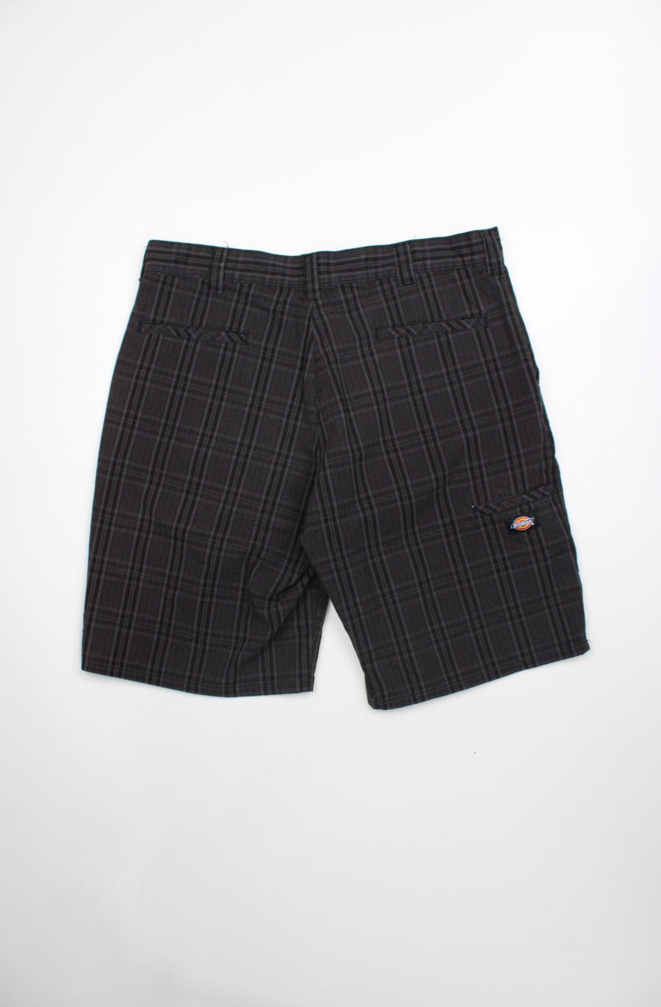 Dickies grey check shorts with embroidered patch logo on the front and back.