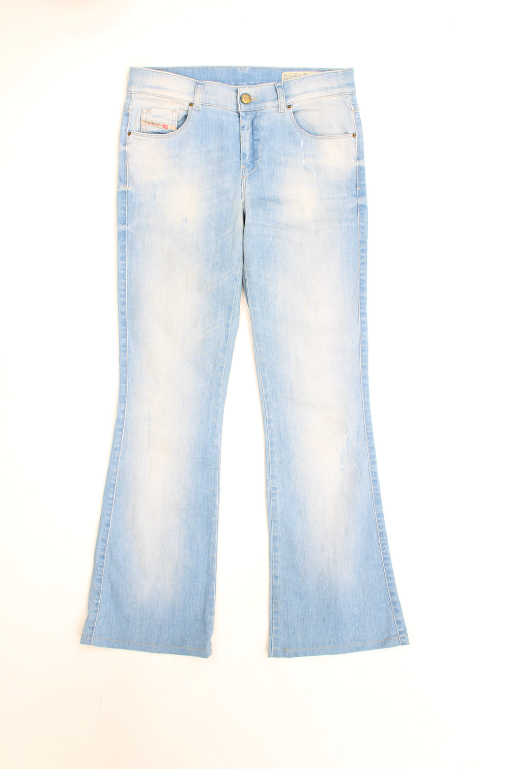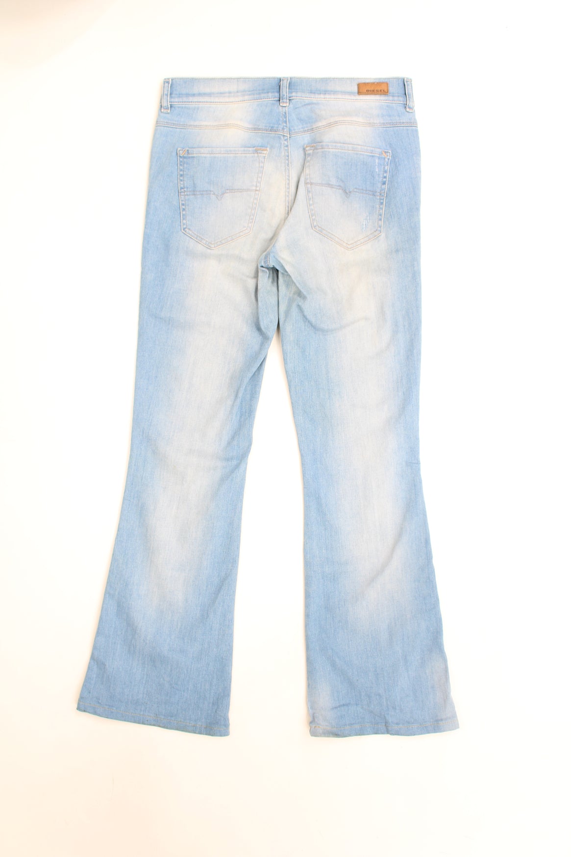 Vintage Y2K light wash Diesel stretchy slim leg, bootcut jeans with embroidered logo on the pocket