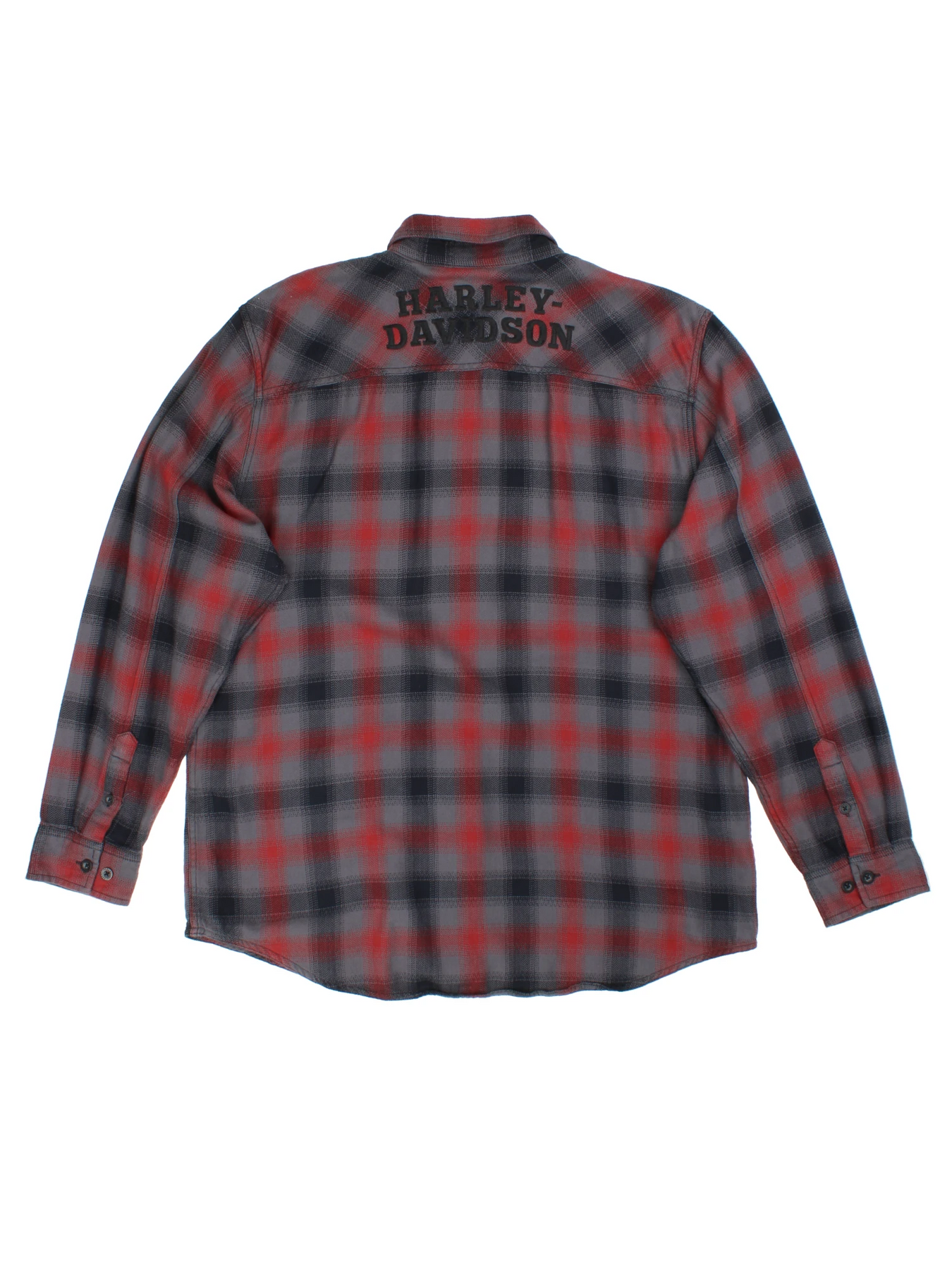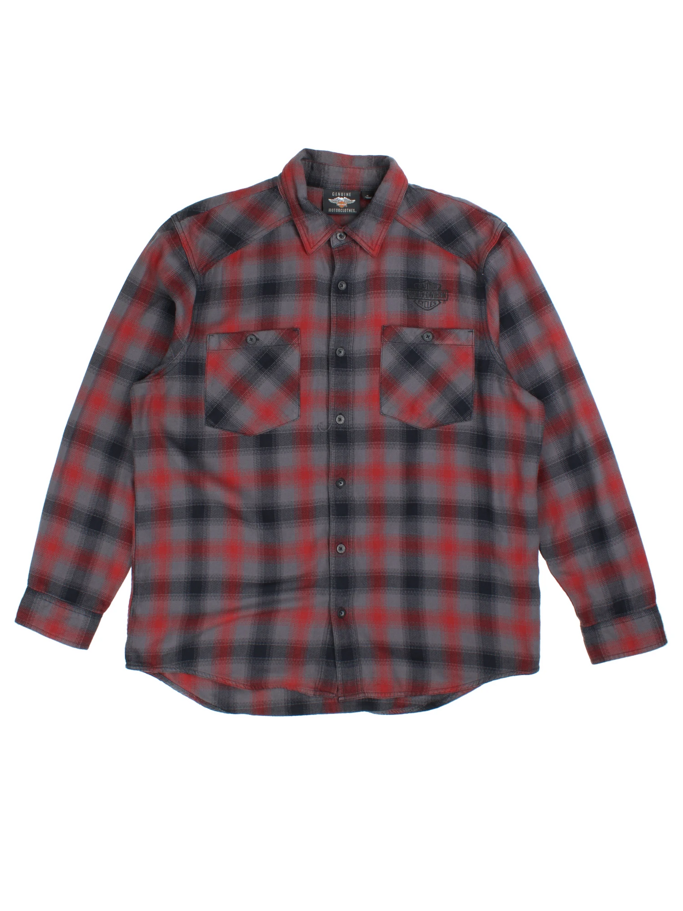 Experience timeless biker style with the Harley-Davidson Red Grey Checked Flannel Shirt, expertly crafted for ultimate comfort and durability. This classic long sleeve shirt features a bold red and grey check pattern that captures an iconic look, perfect for casual wear or a relaxed ride. Designed from soft, breathable flannel, it offers a relaxed fit, making it a versatile staple in any wardrobe. Emblazoned with authentic Harley-Davidson branding both front and back, this shirt is a true highlight for enthusiasts and collectors alike. Size XL ensures a comfortable fit for most, while the stylish dual chest pockets add practical flair. Pair this standout piece with jeans or biker boots for a rugged, effortlessly cool appearance.