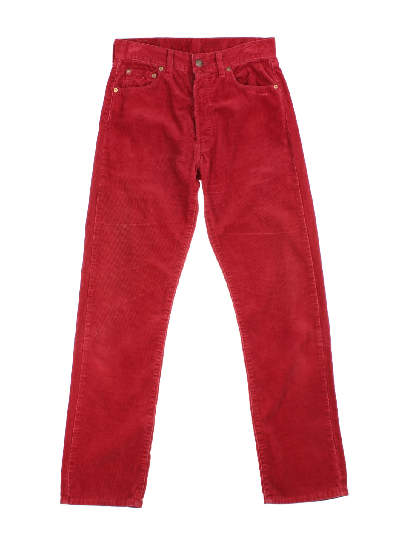Elevate your wardrobe with the iconic Levi Strauss Corduroy Red Trousers, a statement piece that channels undeniable vintage flair. Crafted from premium corduroy for lasting comfort and durability, these trousers offer a versatile straight-leg fit that’s perfect for both casual and smart-casual occasions. The deep red hue captures attention and adds a bold pop of colour to any outfit, making these trousers ideal for expressing your retro style. Designed in a classic silhouette and featuring the signature Levi Strauss patch, these trousers in size M ensure a flattering and comfortable fit. Perfect for vintage lovers and collectors, these trousers can be easily paired with tees or shirts for effortless retro-inspired looks. Add a touch of timeless style to your collection and stand out with these unique corduroy trousers today.