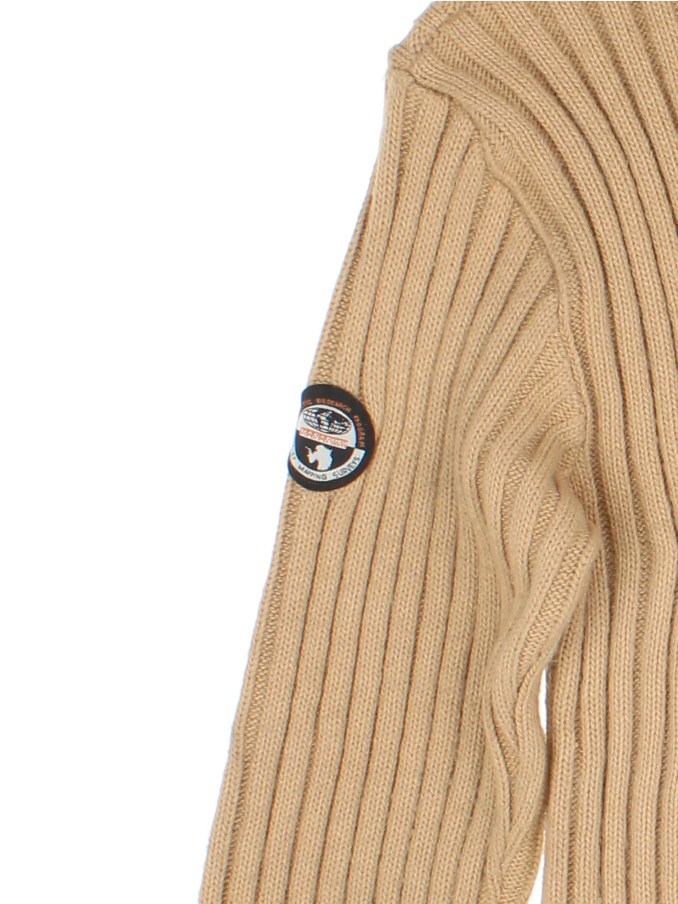 Embrace warmth and classic style with this Napapijri Beige Wool 1/4 Zip Pullover Jumper, featuring a cosy ribbed texture and striking red trim accents at the collar and sleeves. Crafted from premium wool, this vintage-inspired jumper offers exceptional comfort and superior insulation for chilly days. The iconic Napapijri logo badge on the sleeve and branded crest at the chest lend authentic vintage appeal, making it a must-have for fans of heritage fashion. Designed in a relaxed size S fit, it’s perfect for layering over shirts or tees, and ideal for casual outings, hiking, or urban adventures. Pair this timeless jumper with jeans or cargo trousers to effortlessly elevate your cold-weather wardrobe.