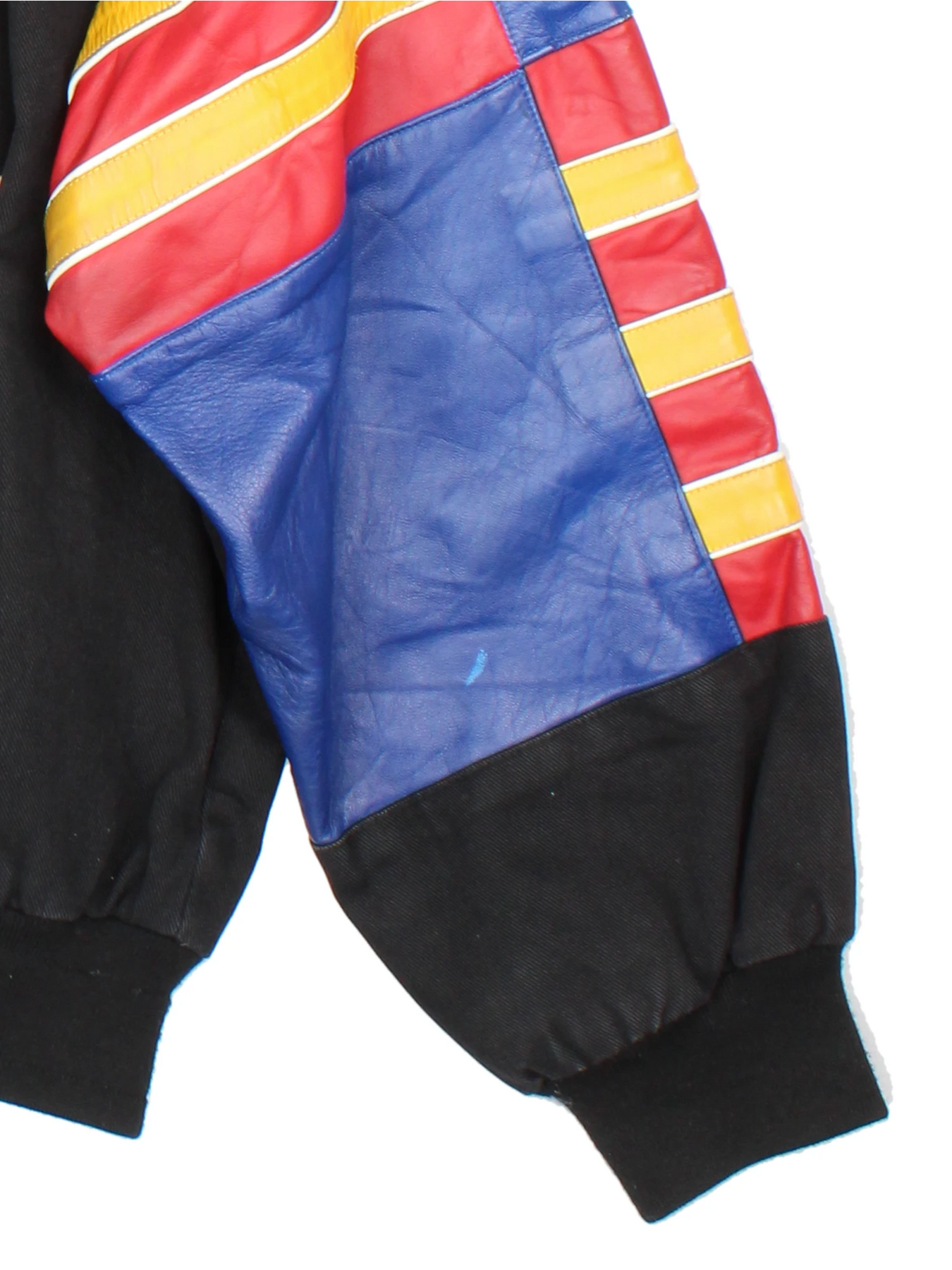 NFL Players Inc Jeff Hamilton Jacket Black Cotton and Leather Rare Vintage (Size L)