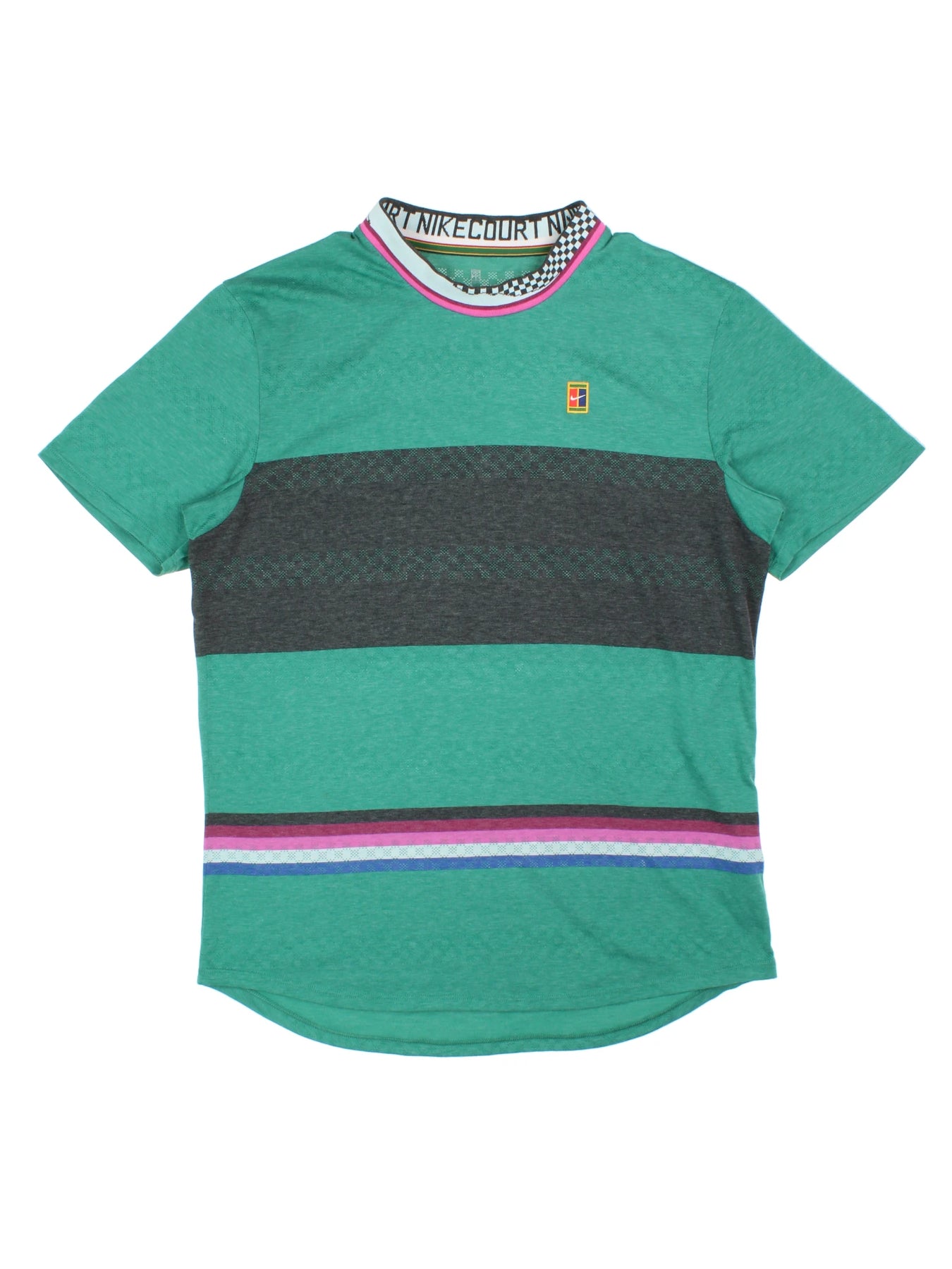 Upgrade your active wardrobe with this Nike Dri-FIT Court Stripe Polo Shirt in a vibrant green shade, designed for those who prioritise both performance and style. Crafted from lightweight polyester, this shirt is engineered with advanced moisture-wicking technology to keep you cool and comfortable during intense activities or casual wear. The unique checkerboard collar detail and multicoloured stripe accents add a sporty flair, making it a standout piece for any occasion. Pair with trainers and shorts for an athletic look, or mix with jeans for casual outings. Make every activity count with the blend of Nike’s signature quality, comfort and iconic athletic style.