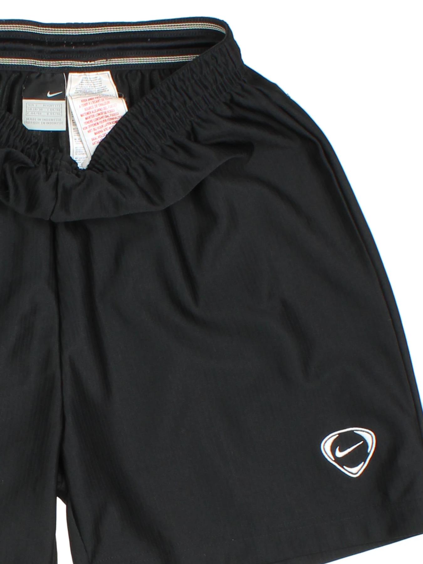 Elevate your athletic wardrobe with these classic Nike Black Polyester Sports Shorts, designed for ultimate comfort and versatility. Crafted from lightweight polyester, these shorts deliver a breathable fit that's ideal for workouts, casual outings, and sporting activities. The elasticated waistband ensures a secure fit, while the subtle Nike logo brings timeless brand appeal. Featuring a crisp black colourway and a practical size XS, these 90's inspired shorts blend retro style with modern performance, making them perfect for any sports enthusiast or vintage fashion lover. Pair them effortlessly with your favourite tees or hoodies for a versatile, easygoing look that suits every casual occasion.