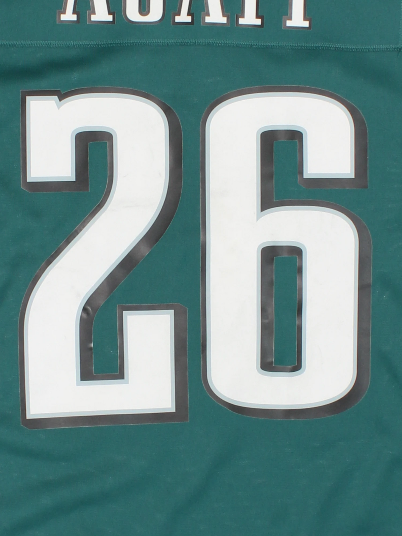Show your loyalty to the game with this official Nike Philadelphia Eagles Jay Ajayi NFL Green Sports Jersey. Crafted from durable polyester, this jersey is designed for both comfort and performance, making it ideal for die-hard fans and casual supporters alike. The striking green colour, iconic Eagles and NFL logo detailing, and bold "Ajayi 26" print on the front and back guarantee maximum style impact. This 90's sports style jersey features breathable mesh panels, short sleeves, and a fitted cut for an athletic silhouette, perfect for game days or everyday wear. An essential addition to any collector’s wardrobe, this piece pairs effortlessly with jeans, shorts, or joggers, promising all-day comfort and unmistakable NFL pride. Grab your officially licensed Philadelphia Eagles jersey today and support your team in standout fashion!