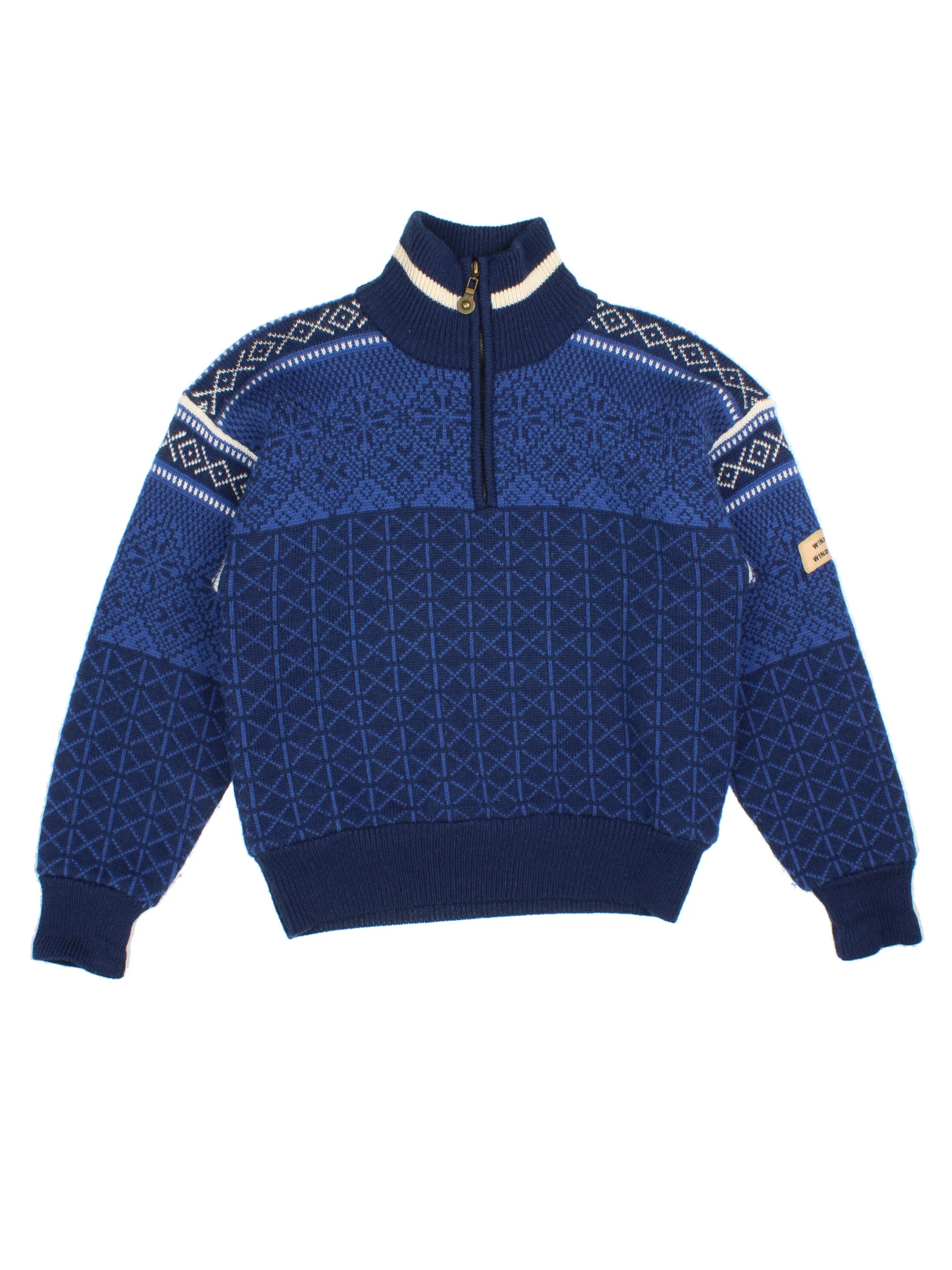 Embrace the spirit of timeless Nordic style with this Windfjord 1/4 Zip Norwegian Knit Jumper in classic blue, crafted from 100% pure new wool for unparalleled warmth and comfort. The intricate geometric pattern paired with ribbed cuffs and collar delivers a vintage 80's look, making it an essential for cool-weather layering. The high-quality wool construction ensures both breathability and exceptional warmth, keeping you cosy yet stylish all season long. Complete with authentic Windfjord patches, this piece reflects the heritage of Scandinavian craftsmanship. Make this unique jumper your go-to for a statement winter wardrobe that's as functional as it is fashionable.