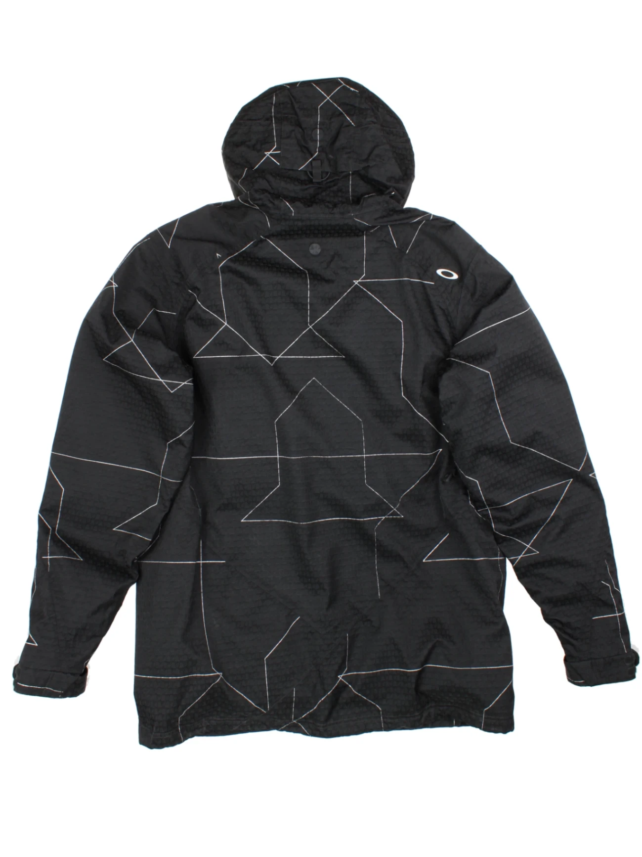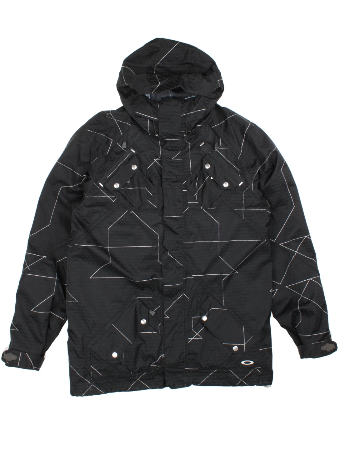 Upgrade your outerwear collection with this distinctive Oakley Black Geometric Print Hooded Jacket, expertly crafted from durable material for optimum protection. Featuring a striking geometric pattern and signature Oakley branding, this jacket delivers both style and high performance. Designed in a relaxed loose fit, it offers comfort and layering versatility, making it ideal for tackling unpredictable festival weather or urban adventures. The jacket includes functional flap pockets and a secure hood, ensuring practicality without sacrificing fashion. Style it with your go-to festival gear or streetwear for a bold, statement look. A must-have for trendsetters and those who demand both performance and style in their wardrobe.