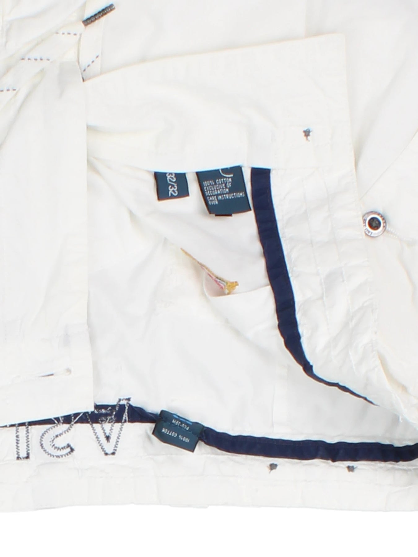 Add a sporty touch to your wardrobe with these Ralph Lauren Polo White Cotton Sailing Team Trousers in size XXL. Crafted entirely from soft, breathable cotton, these trousers embody classic American sportswear with standout details including bold USA flag embroidery, USA-67 branding, and RL-201 insignia. Featuring durable drawstring and button fastenings, the trousers offer a secure fit while two spacious flap pockets provide practicality for everyday wear. Ideal for outdoor adventures, yacht events, or sporty summer ensembles, these trousers ensure you look sharp and feel comfortable, making them a versatile choice for any casual or sports-driven outfit. Pair with a polo shirt for the complete Ralph Lauren look and embrace a timeless, athletic vibe.