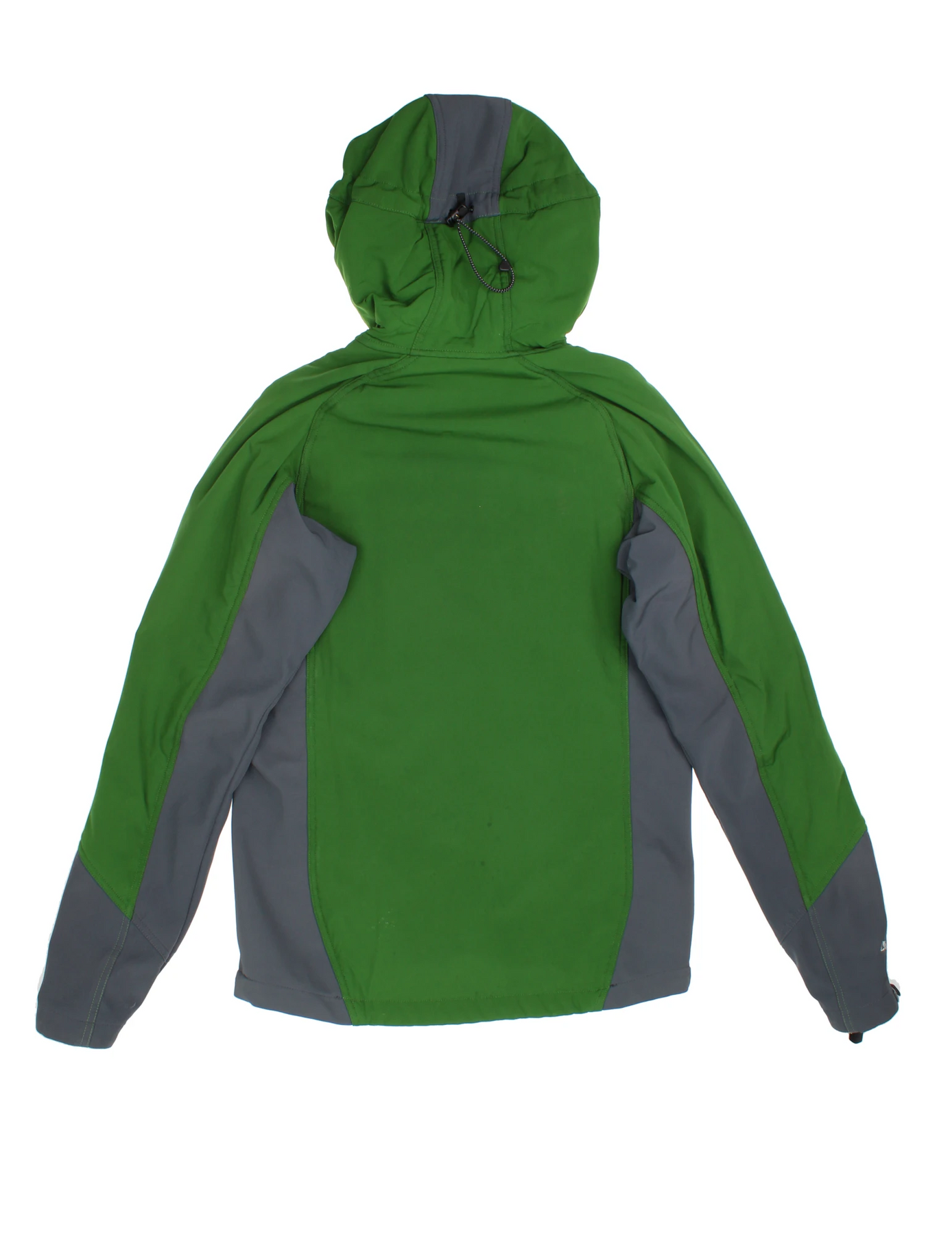 Elevate your outdoor adventures with the Rab Green Grey Softshell Jacket. This small-sized jacket features a durable polyester and nylon blend, designed to withstand wind and light rain while keeping you comfortable. The jacket boasts advanced softshell technology with adjustable cuffs, multiple zip pockets, and a practical hood for versatile usage. Ideal for hiking, trekking or everyday wear, the distinctive two-tone green and grey colourway delivers a stylish yet rugged look, perfect for modern outdoor enthusiasts. Whether you are hitting trails or exploring the city, this jacket combines technical performance with enduring style, making it an essential addition to your outerwear collection.