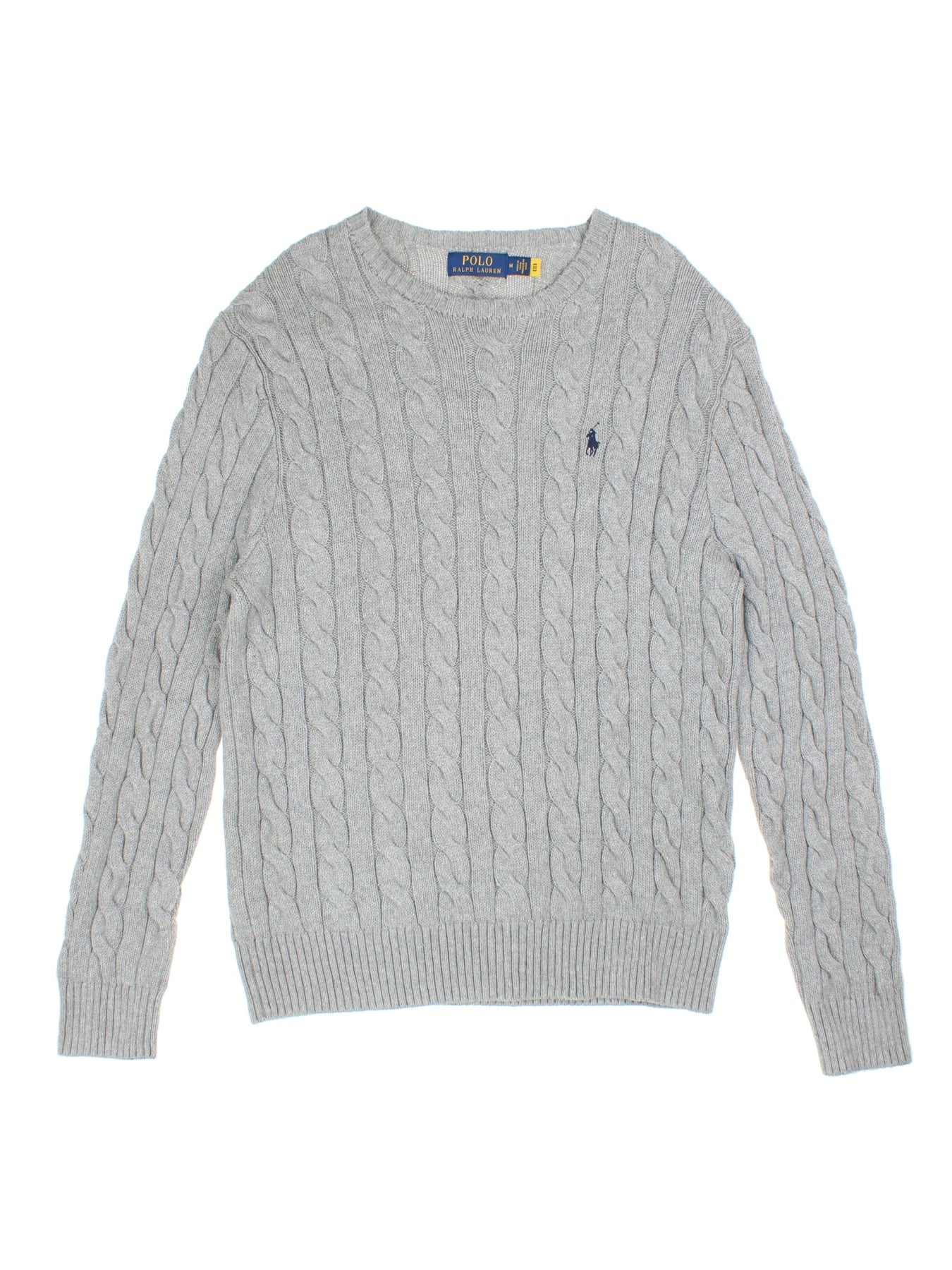 Embrace timeless sophistication with the Polo Ralph Lauren Cable Knit Grey Wool Jumper, an essential knitwear piece crafted for classic comfort and enduring style. Designed in a versatile medium size, this crew neck jumper features a distinctive cable knit pattern and a soft grey colour that effortlessly elevates both casual and smart outfits. Made from premium wool, it delivers warmth and breathability, making it an ideal choice for cooler weather. The iconic Ralph Lauren logo embroidery on the chest highlights the brand’s heritage and adds a signature touch of luxury. Perfect for layering over shirts or pairing with jeans, this jumper ensures comfort, style, and quality for any occasion. A must-have for vintage lovers and those who appreciate refined knitwear.