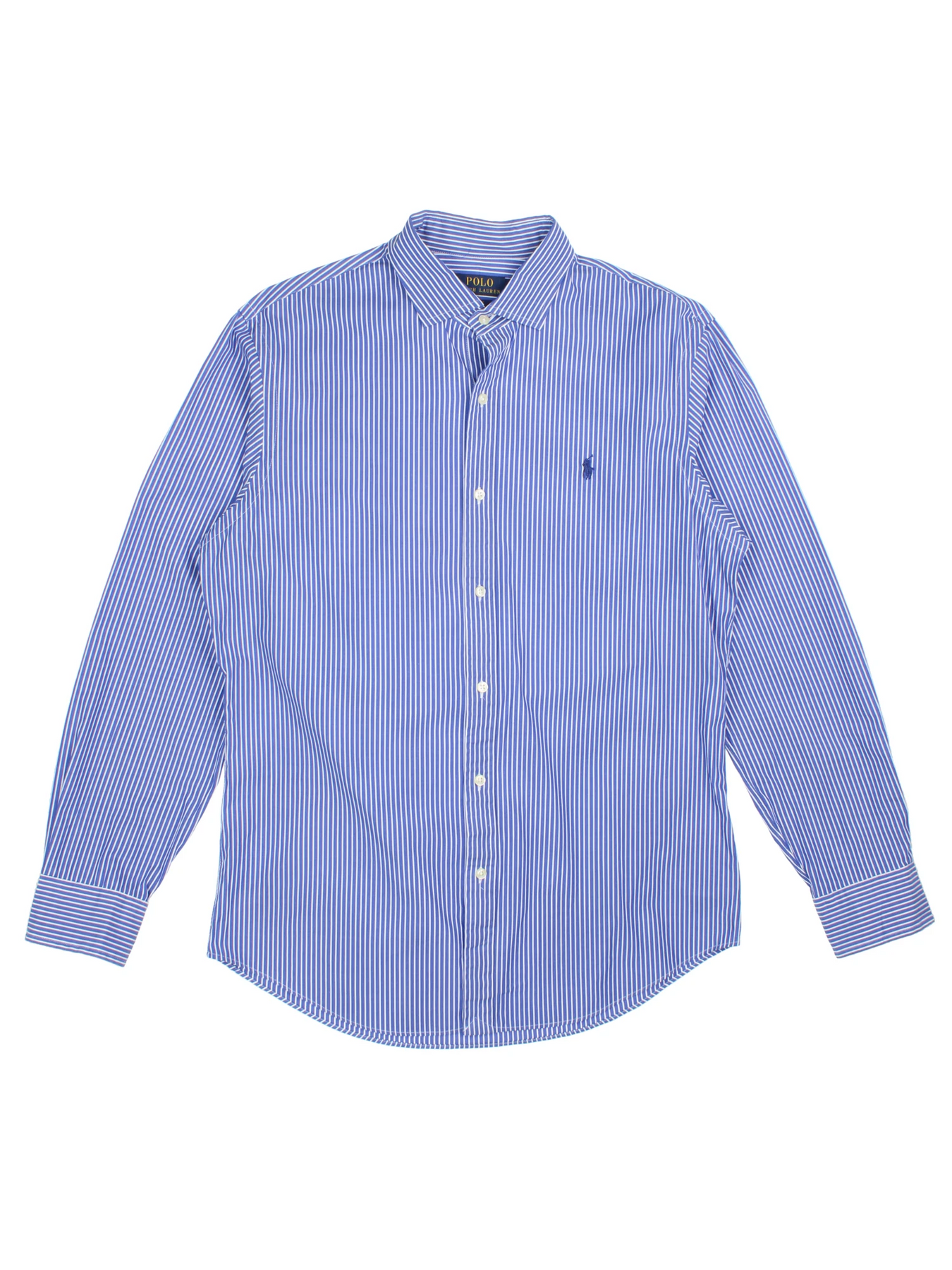 Elevate your wardrobe with this classic Ralph Lauren Blue Striped Slim Fit Cotton Shirt, offering a striking balance of timeless style and everyday comfort. Crafted from premium cotton, this shirt delivers a breathable and soft wear, perfect for both smart and casual occasions. Featuring a sharp blue and white vertical stripe pattern, long sleeves, and the iconic Ralph Lauren embroidered logo, this size L shirt flatters all body types with its tailored fit. The 90's clothing style and high-quality craftsmanship make this piece an exceptional addition to any gentleman's collection, pairing seamlessly with denim or chinos for an instantly polished look. Designed for versatility and durability, it’s a must-have for those who appreciate both style and substance.