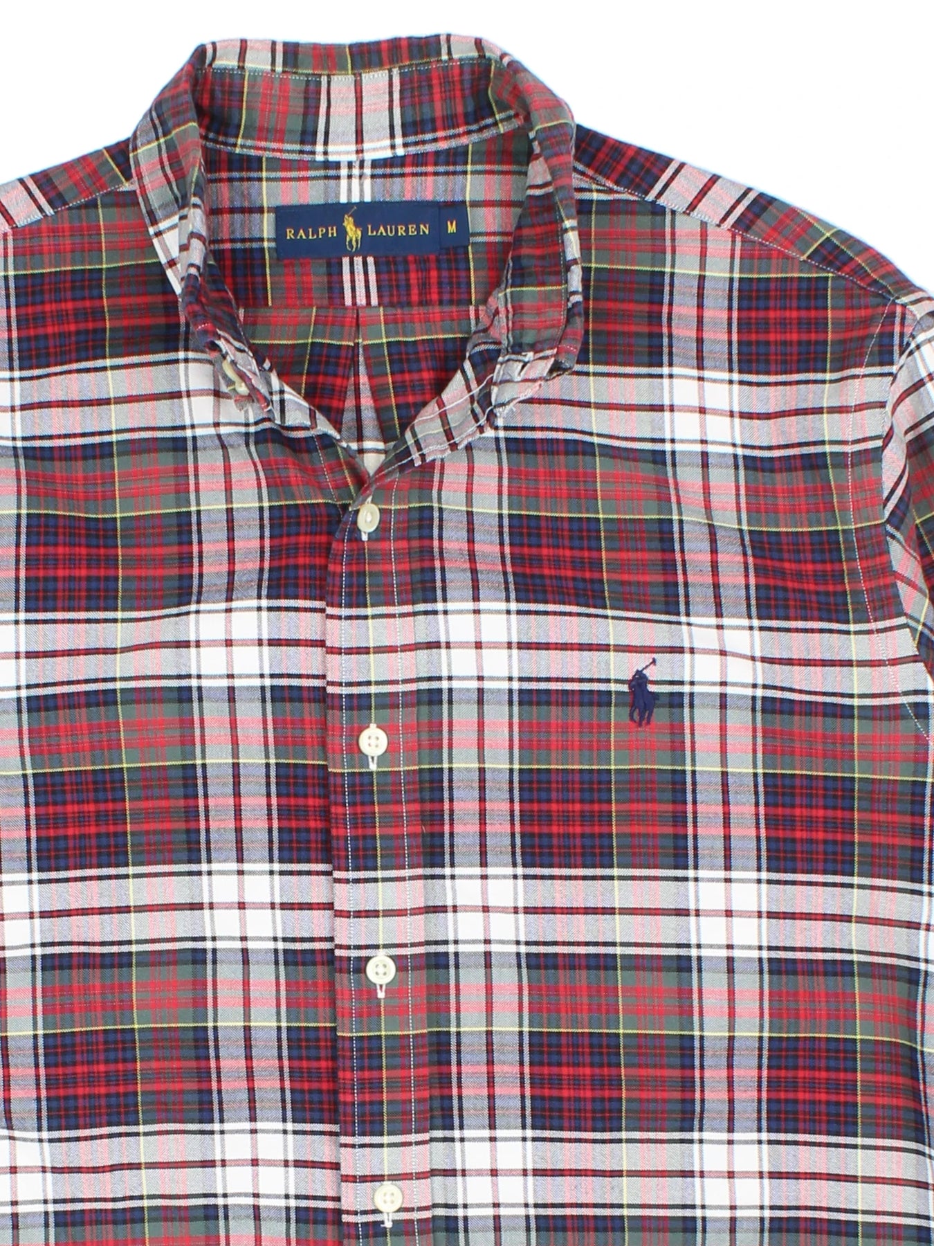 Elevate your casual style with the timeless Ralph Lauren Red Multicoloured Cotton Flannel Shirt in size Medium. Crafted from soft, breathable cotton, this classic tartan shirt embraces vintage 90’s flair with an effortlessly stylish design. The shirt features a button-down collar, full front button fastening, and the signature Ralph Lauren logo embroidered on the chest for a distinguished touch. Its relaxed fit and long sleeves make it perfect for layering or wearing solo on milder days. Pair it with your favourite jeans or chinos for a polished off-duty look.