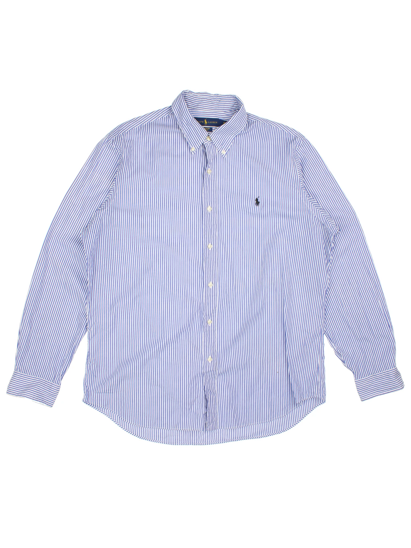 Step into timeless sophistication with this Ralph Lauren Blue Striped Cotton Shirt in size XL. This classic button-down features a smart, vertical blue and white stripe design that delivers effortless style for both casual outings and smarter occasions. Crafted from 100% pure cotton, it offers a breathable and comfortable fit all day long. The shirt's relaxed classic fit, button-down collar, and embroidered Polo logo on the chest make it a versatile addition to any wardrobe. Whether paired with chinos for a business-casual look or jeans for laid-back weekends, this Ralph Lauren shirt brings vintage charm and premium quality to your collection. Perfect for elevating your day-to-day wardrobe or gifting to a classic menswear enthusiast.