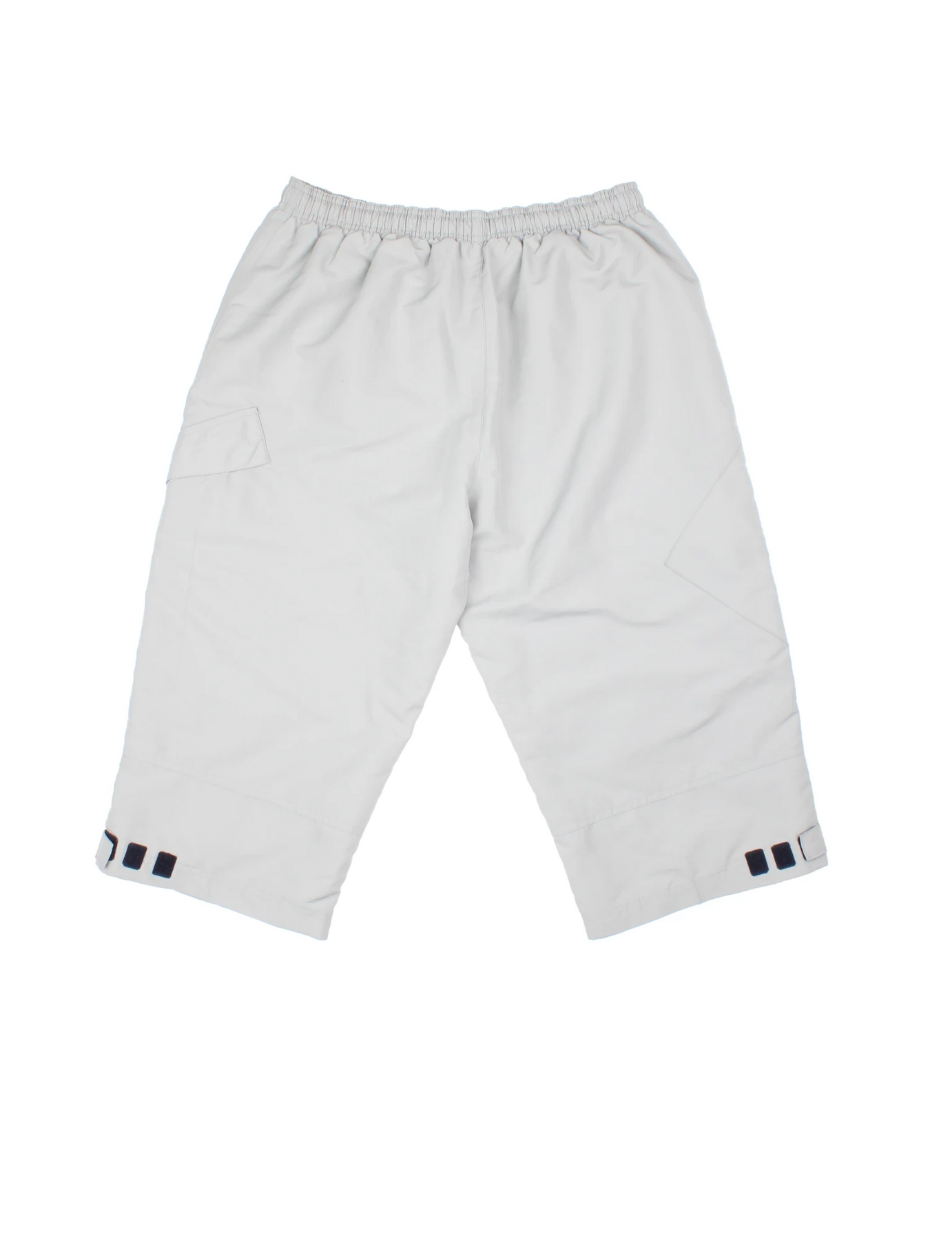 Y2K Reebok 3/4 Length Cargo Shorts in grey colourway. Elastic waistband with drawstring, multiple pockets, mesh lining and has the logo embroidered on the front.