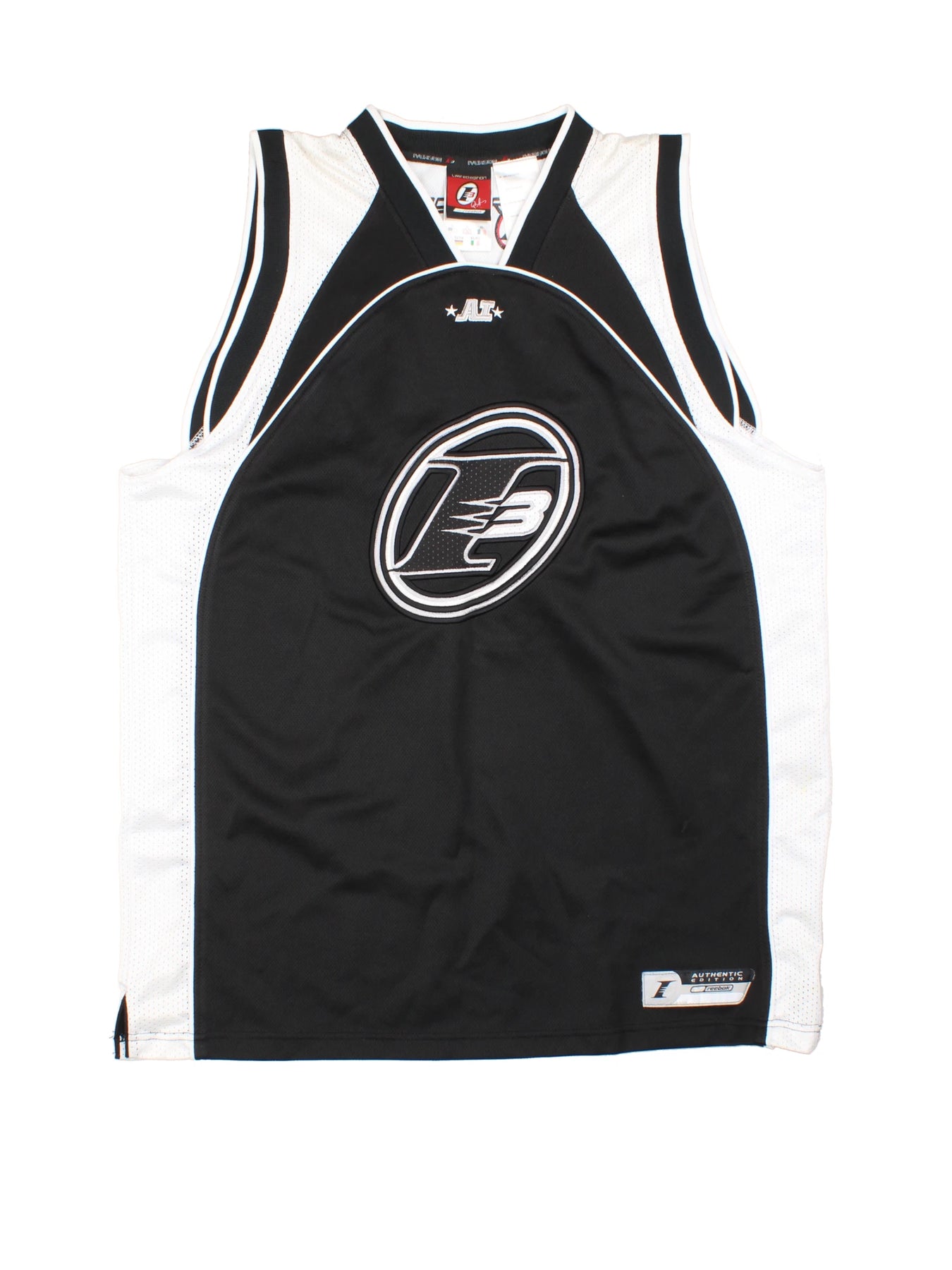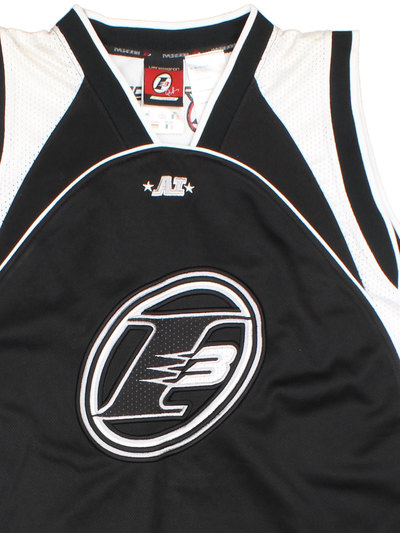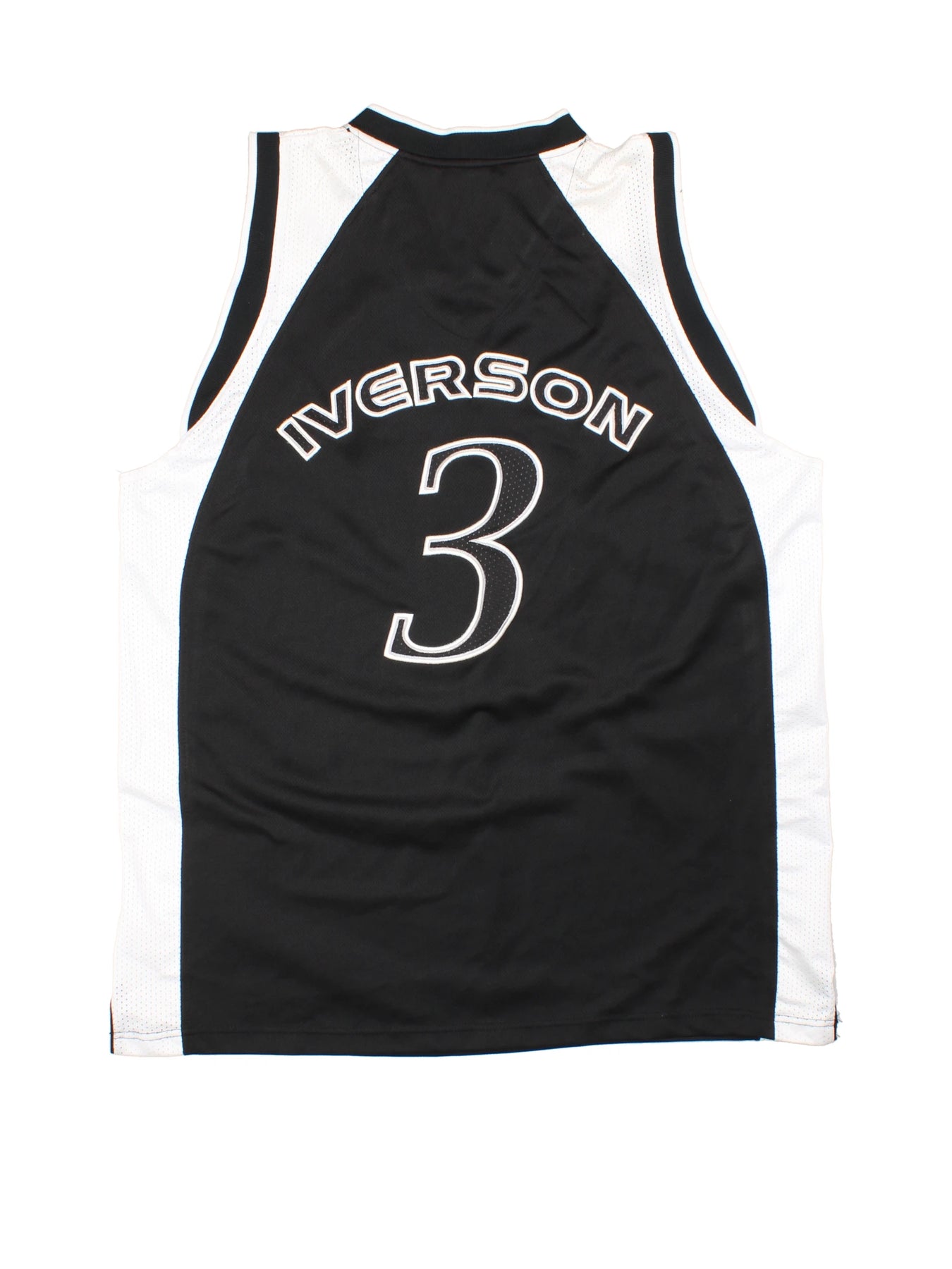 Show off your basketball spirit with this authentic NBA Allen Iverson 3 Black Mesh Jersey by Reebok, crafted from high-quality polyester for enduring performance and comfort. Featuring the iconic number 3 and Iverson's name boldly printed on the back, this size XL jersey is designed for fans of the game and Iverson’s legendary legacy. The breathable mesh panels ensure cool comfort whether you're on the court or cheering from the stands. Characteristic of 00’s teamwear style, this jersey is a must-have for collectors and streetwear enthusiasts alike. Pair it with your favourite jeans or shorts for a standout sporty look. Perfect for everyday wear or special game nights!