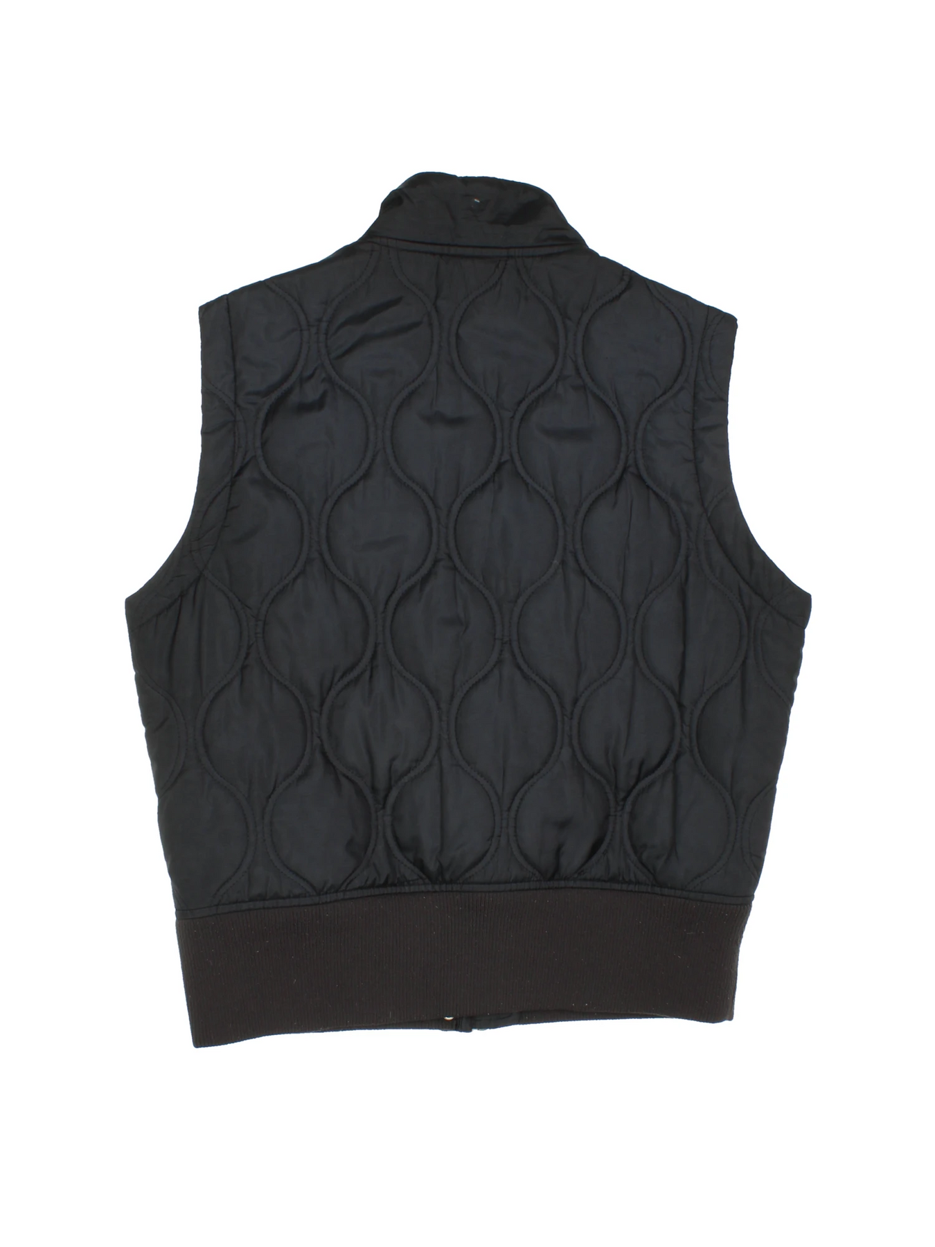 Upgrade your winter layering with the classic Reebok Black Quilted Gilet Vest. This sleeveless vest comes in size S and features a sleek black colour for versatile styling, making it perfect for casual outdoor activities or athleisure looks. Crafted from durable polyester, the vest is lightweight yet warm, with distinctive quilted stitching that enhances its visual appeal and insulation. The full zip front and ribbed collar add to its snug fit, ensuring comfort while keeping out the cold. Iconic Reebok branding, visible on the hem, adds a premium touch. Ideal for the 90's sports-inspired wardrobe, this vest layers effortlessly over hoodies and jumpers for a fast, stylish update to your outerwear collection. Don’t miss the chance to add this essential Reebok piece to your seasonal rotation—perfect for both sport and casual wear.