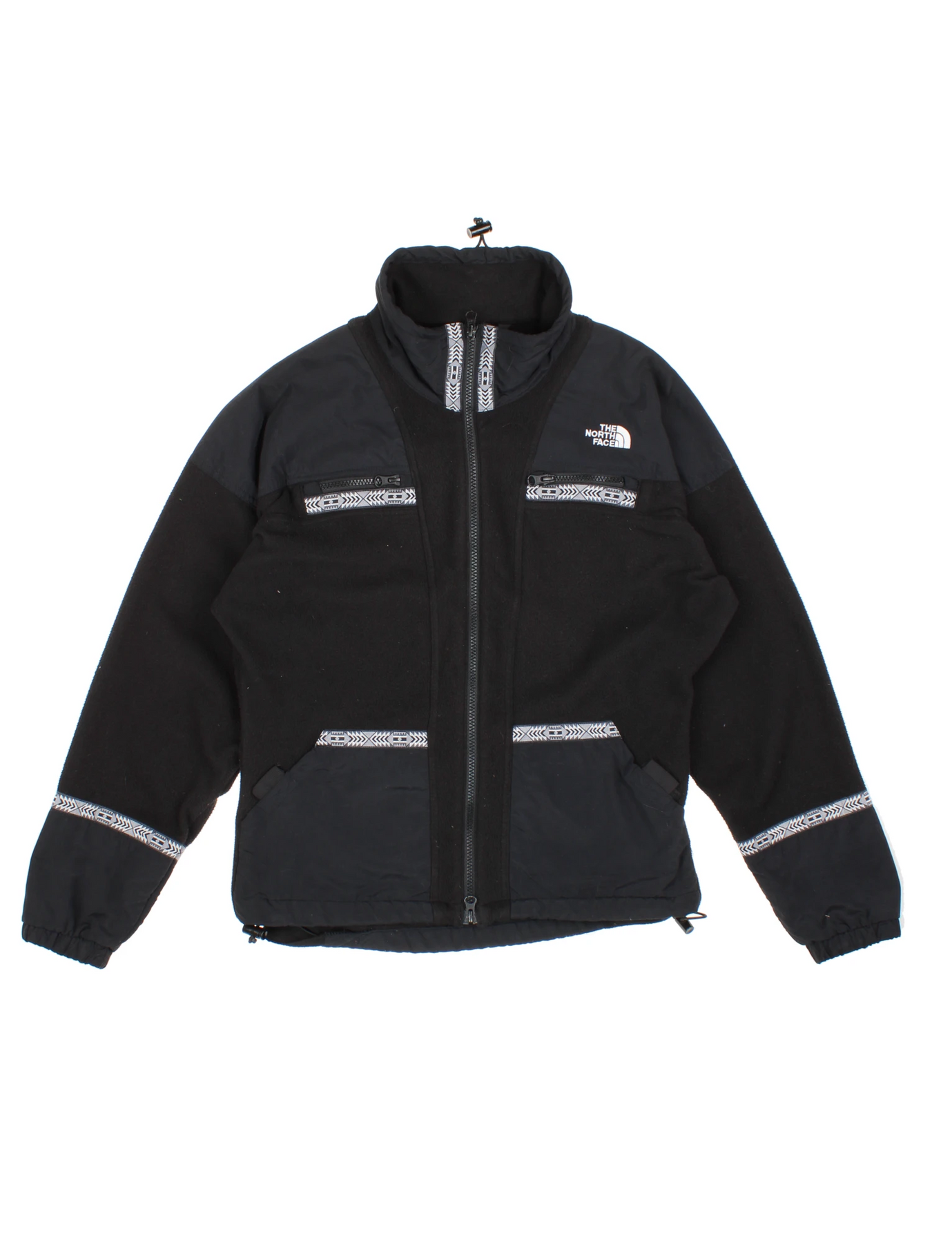 Experience classic 90's outdoor fashion with The North Face Rage Fleece Full Zip Jacket in timeless black, adorned with distinctive geometric pattern trims. Crafted from soft fleece and durable nylon for superior warmth and protection, this vintage jacket ensures maximum comfort and iconic style whether you're on a chilly hike, urban adventure, or festival day out. The spacious Size M offers a relaxed fit that layers perfectly over your favourite tees or jumpers, and multiple zip pockets provide practicality for your essentials. Reflecting the innovative spirit of The North Face, this hard-to-find Rage edition is a true collector’s piece for fans of retro outerwear. Don’t miss out on this versatile jacket, ideal for men seeking warmth and statement street appeal.